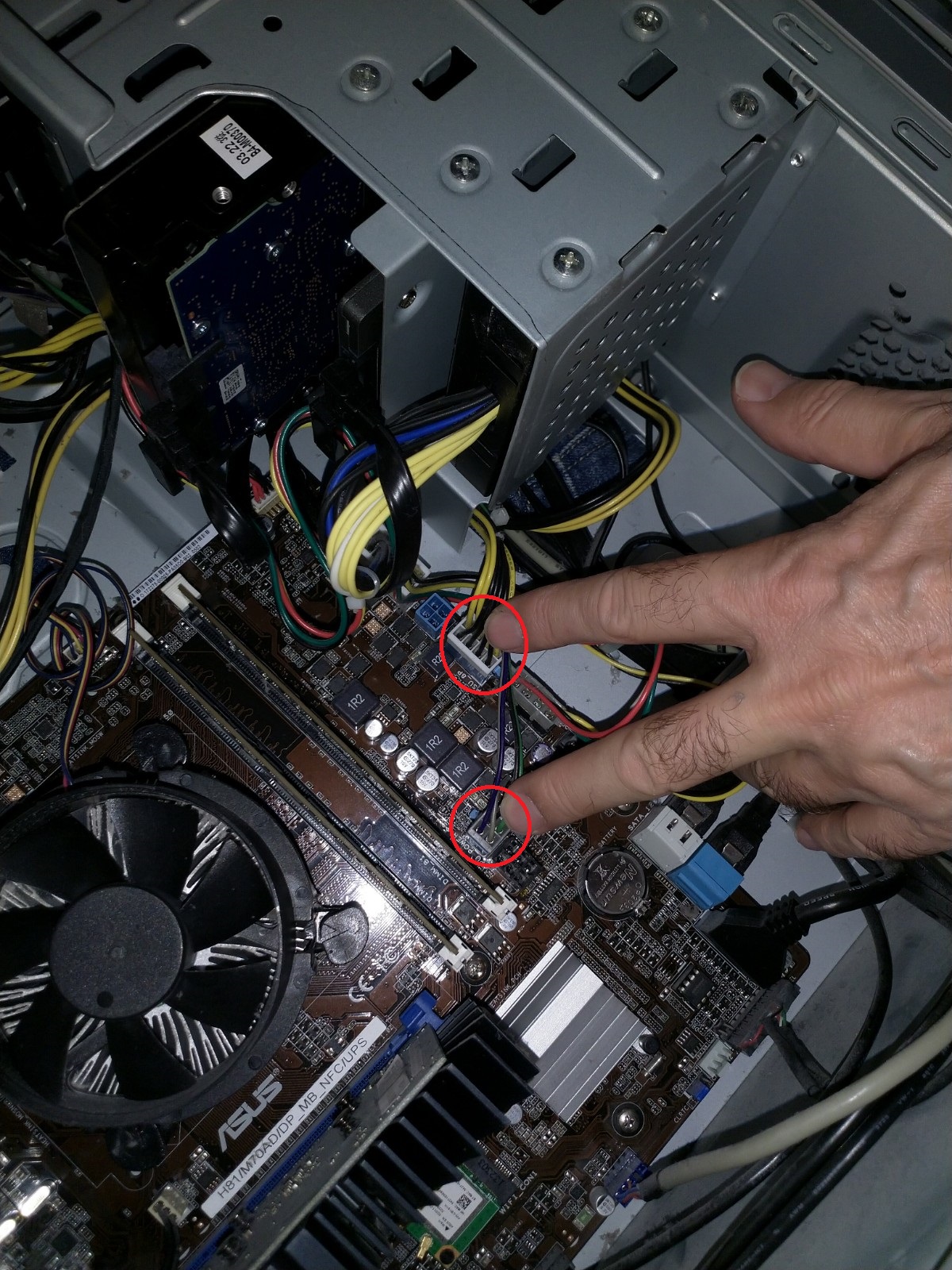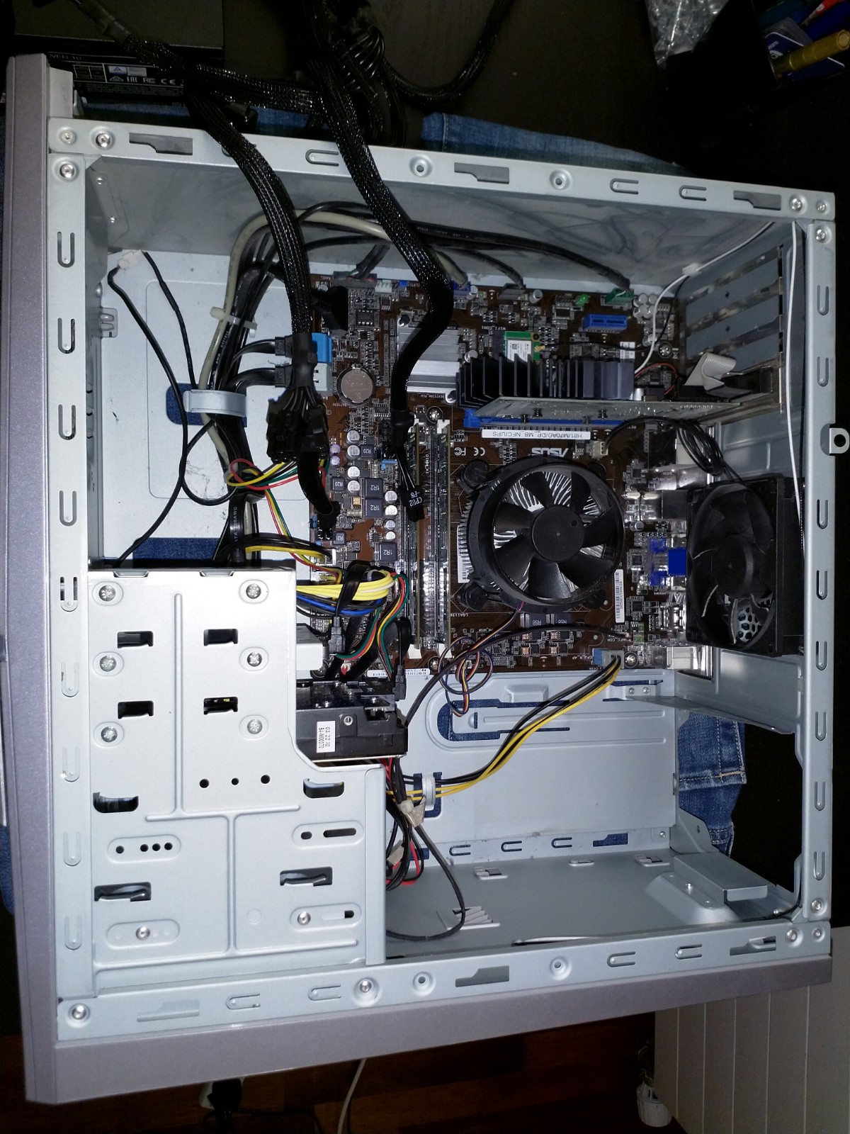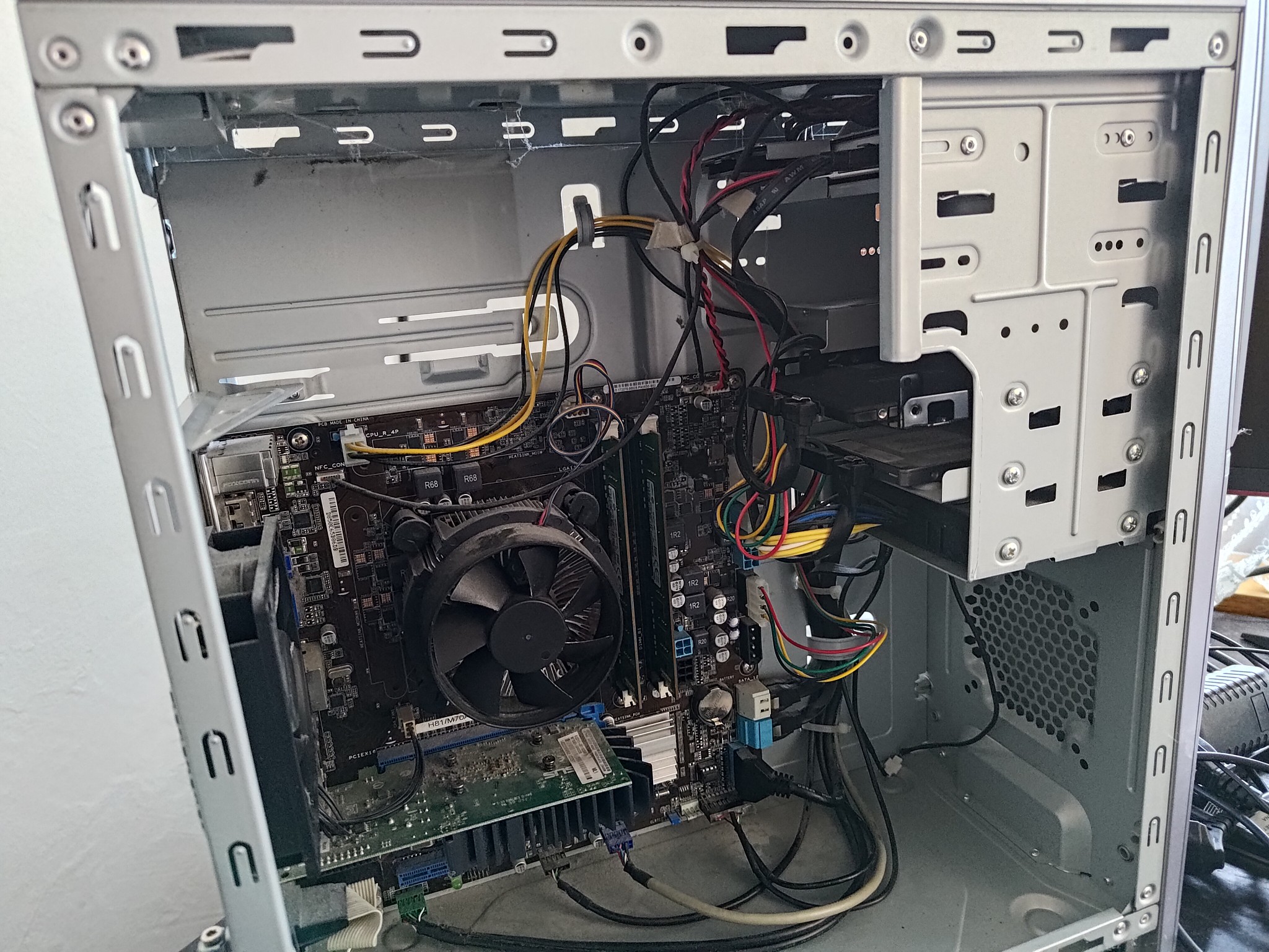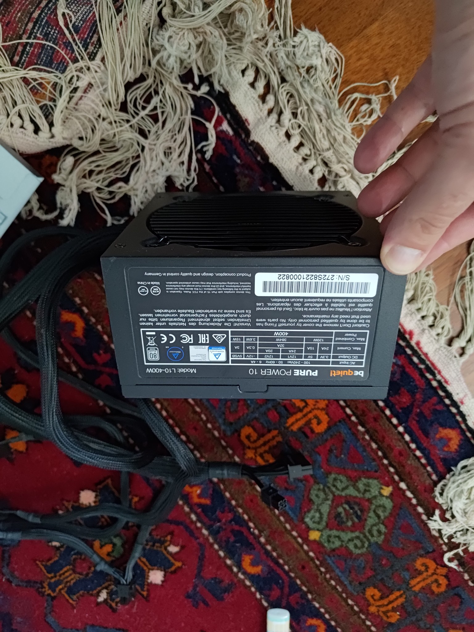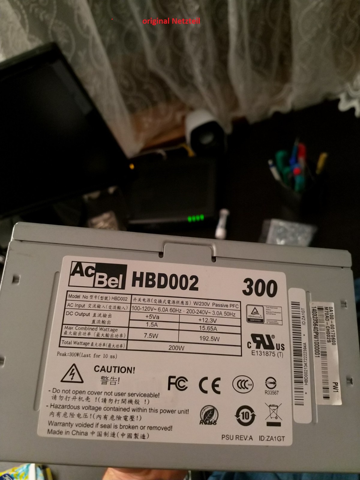 Ich bin dann hingegangen und habe ein 500Watt BeQuiet-Netzteil genommen, die 4 Kabel (grün, grau, schwarz und lila) gekappt, den 4-pol-Stecker mit den gleichen Farblitzen am Originalnetzteil abgeschnitten und mit denen des BeQuiet-Netzteils verlötet und eingeschrumpft. Der 8-pol-ATX-Stecker vom Netzteil passt auf das Mainboard, den Rest schließt man wieder wie zuvor am Mainboard an. Läuft......