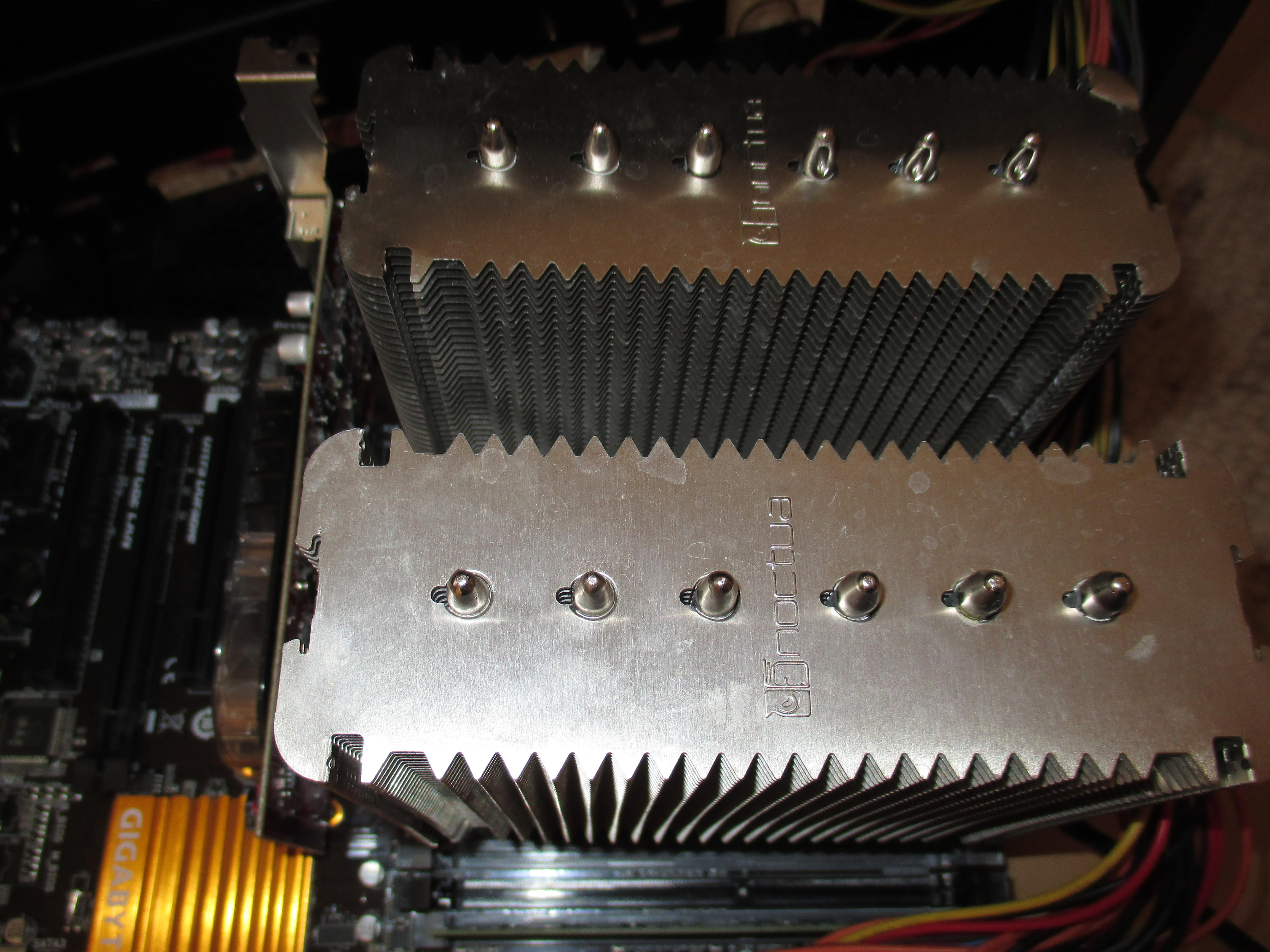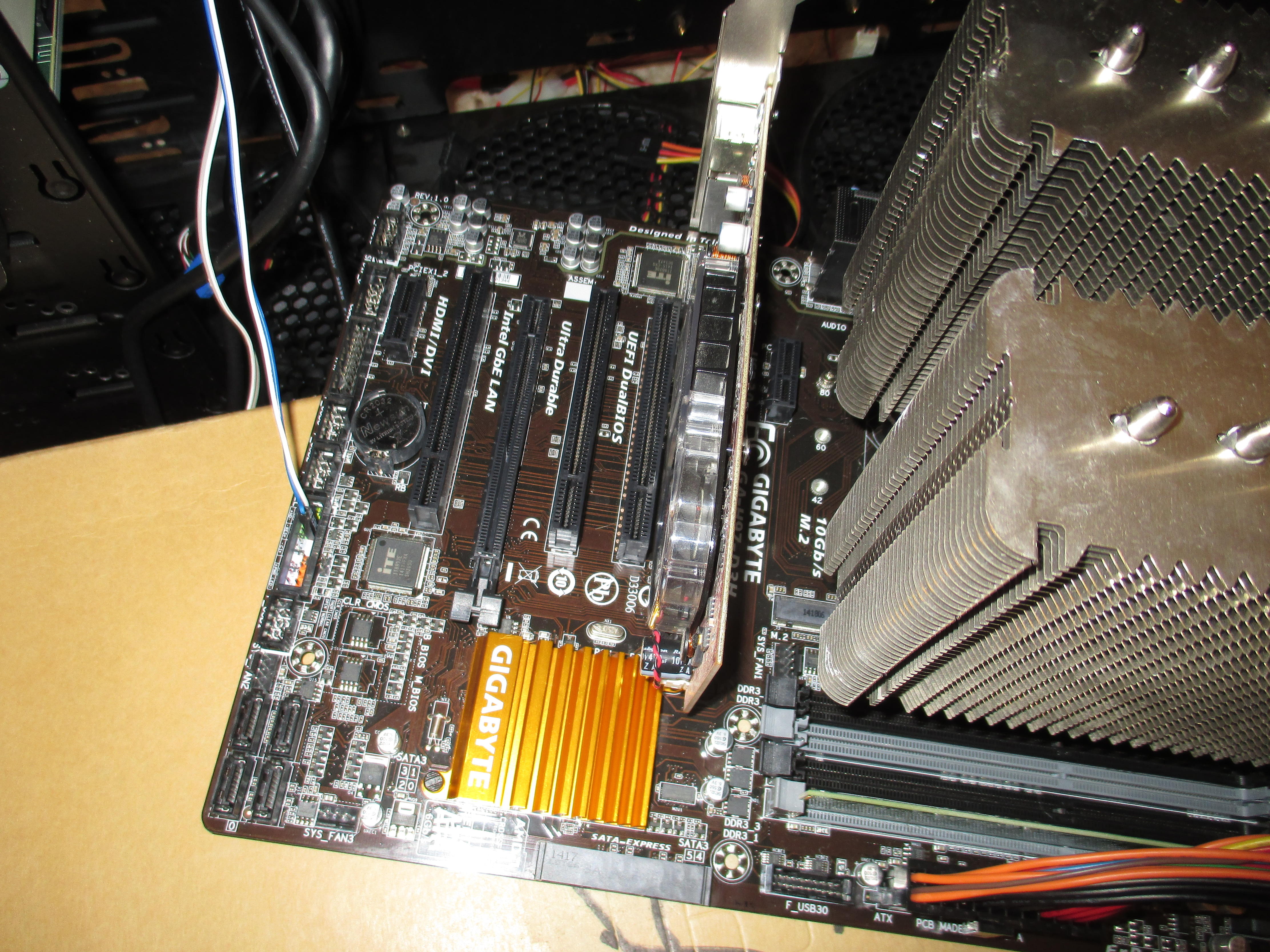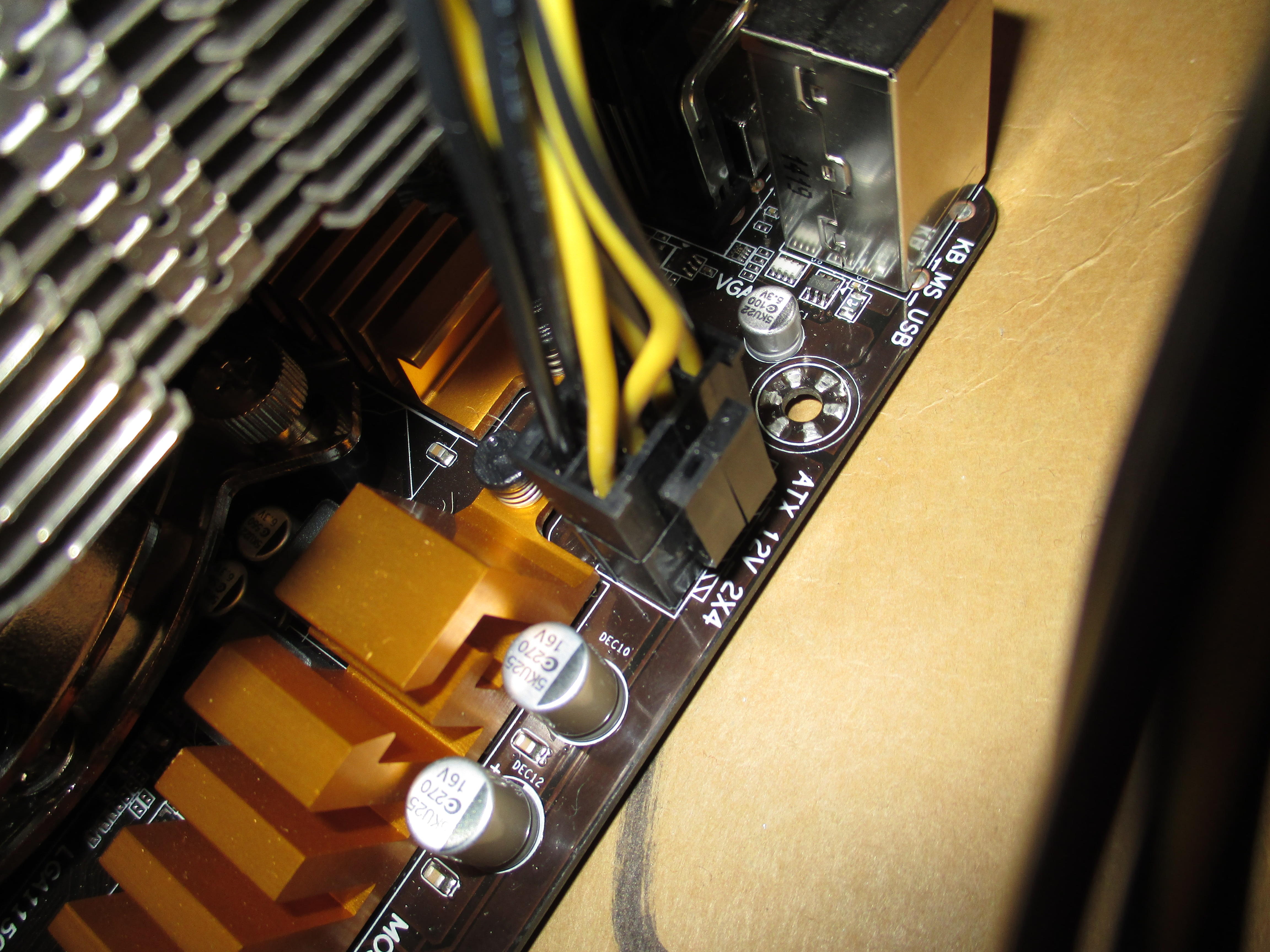 Wenn ich das Mainboard starte, passiert allerdings folgendes: Die Lüfter drehen kurz hoch und dann wieder runter. Es kommt kein Bild. Das selbe passiert auch, wenn ich das Mainboard ohne CPU starte. Dann drehen die Lüfter auch kurz hoch und wieder runter.