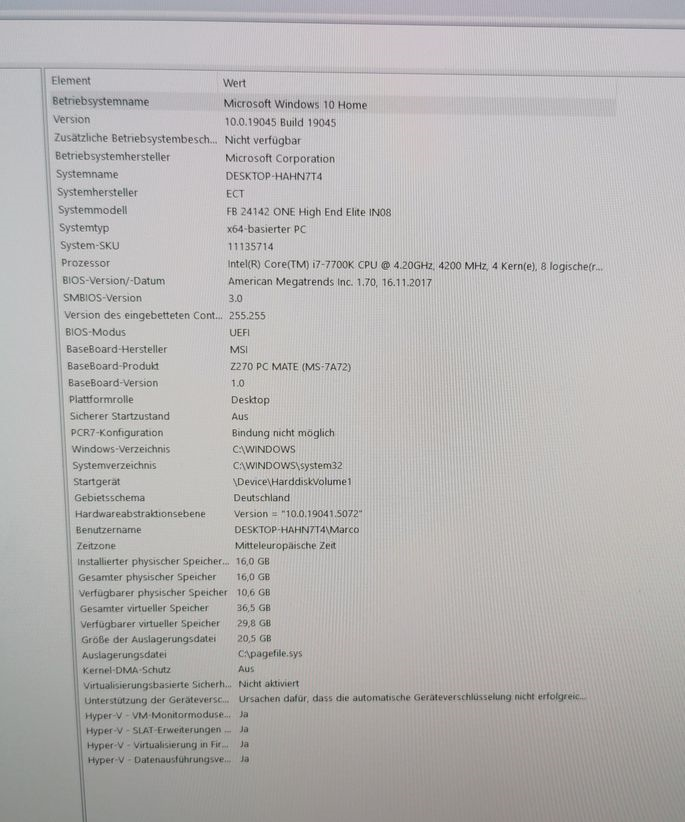 - Mainboard: … MSI PC MATE Z270 (MS-7A72)