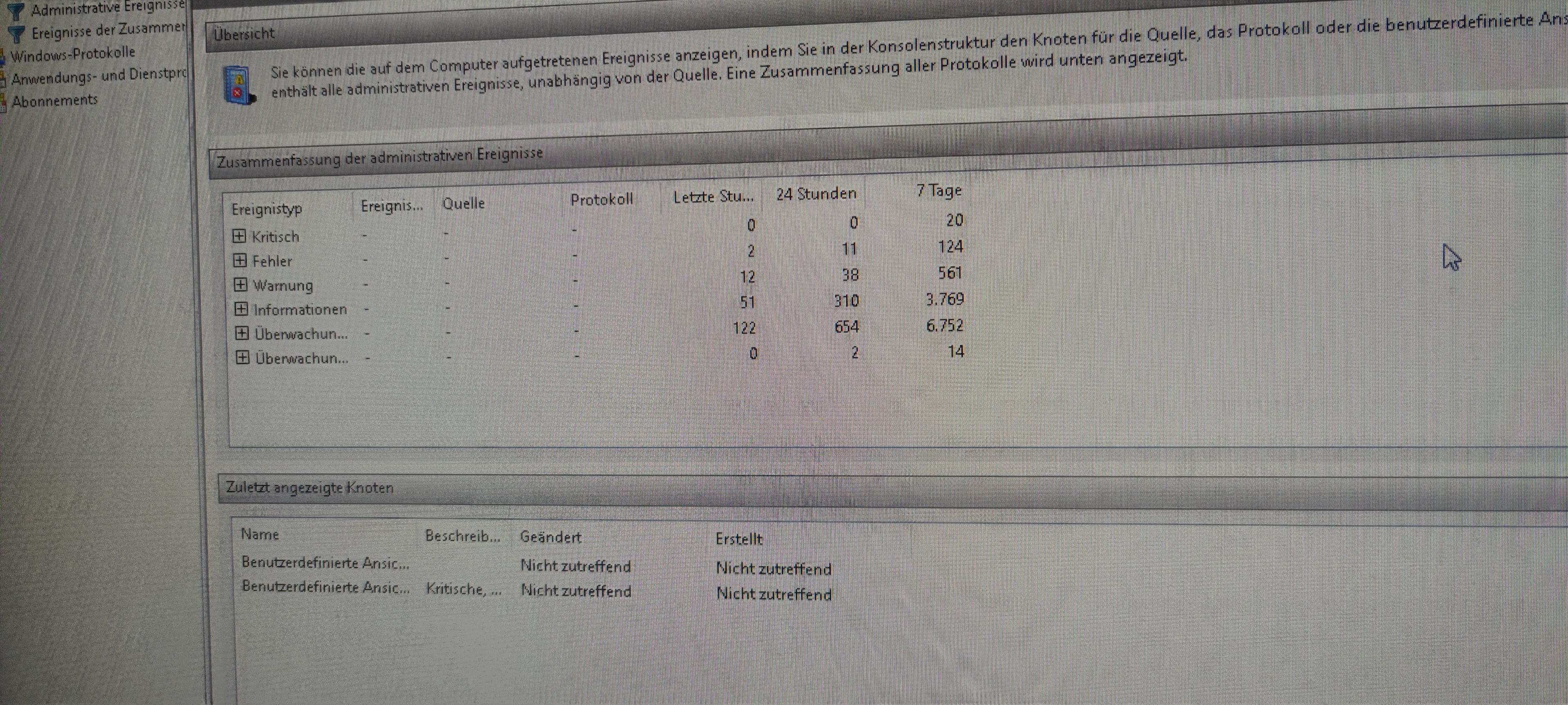 Ich habe Mal Bilder gemacht von der Ereignisanzeige.