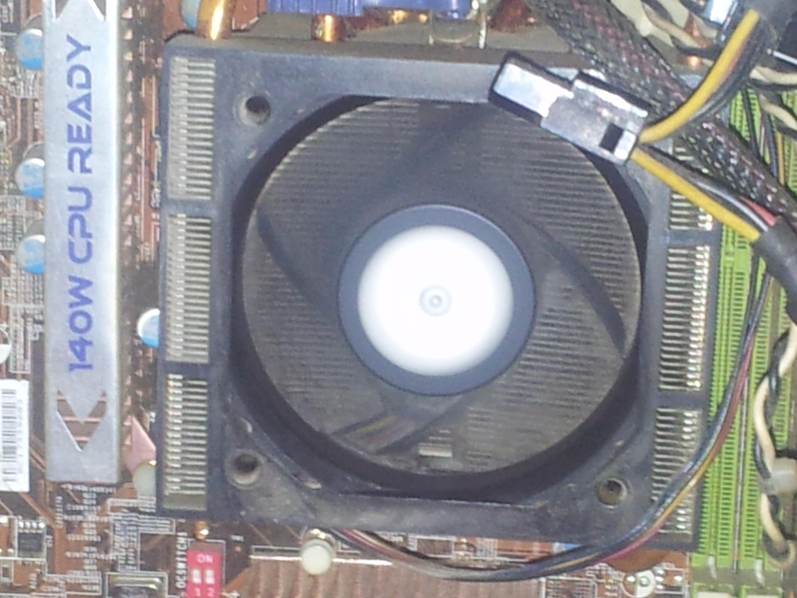 das Ding abzubauen, die (mit sicherheit benutzte) Standardwärmeleitpaste gegen neue gute zu wechseln, den Staub von Kühlkörper und Lüfter zu entfernen wird den PC vor dem Hitzetod bewahren.