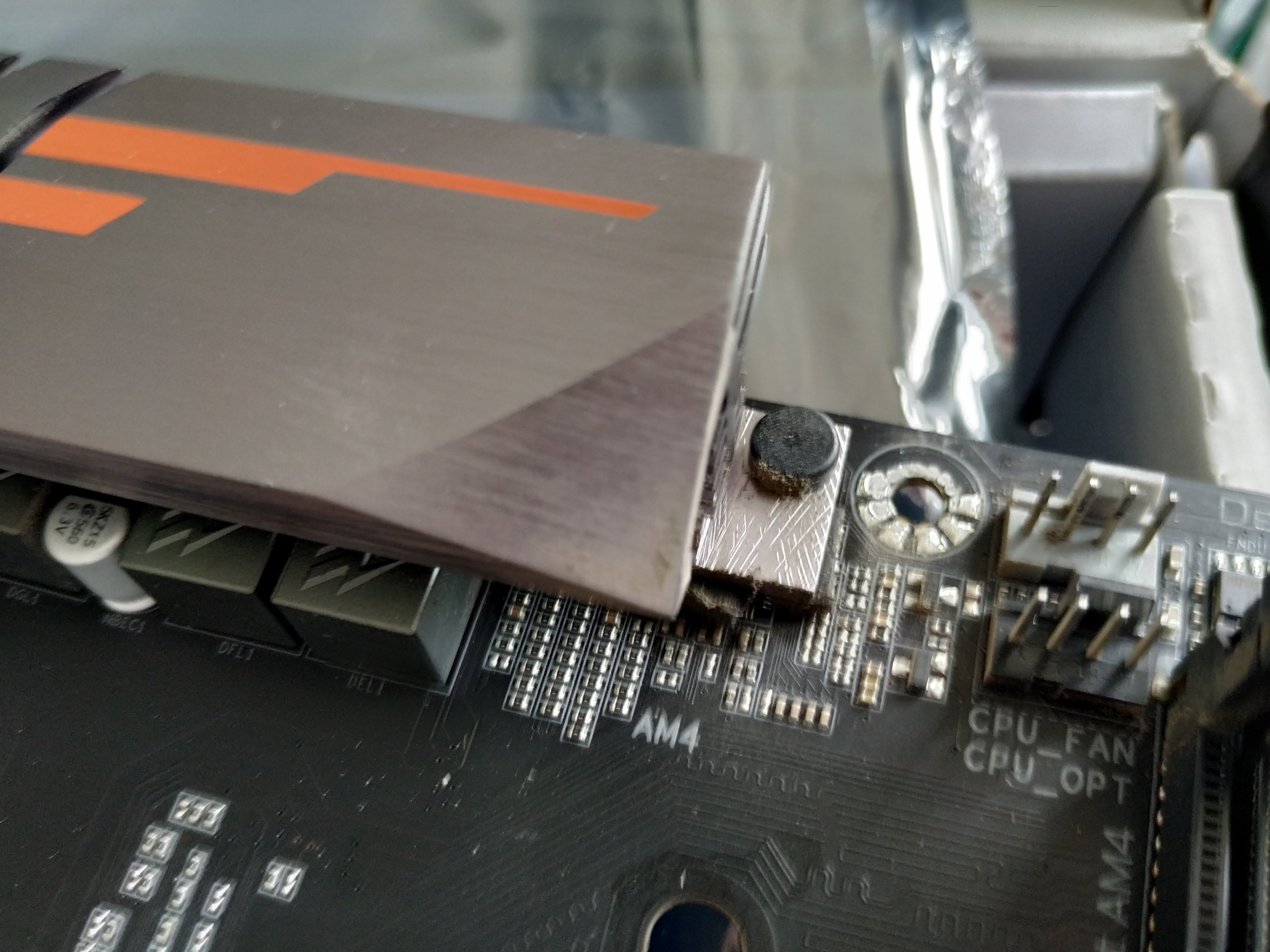 Bild eins zeiht, wie ich finde, Verbrennungsspuren, Bild zwei den fehlenden M2 Kühler, das dritte wiederum die Versuche eines unbedarften einen Kühler zu montieren.