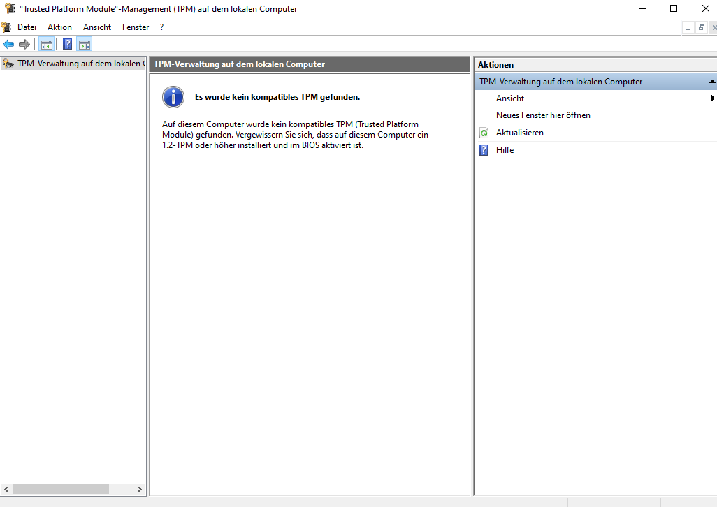 unter "tpm.msc" steht auch dass es nicht gefunden wurde?