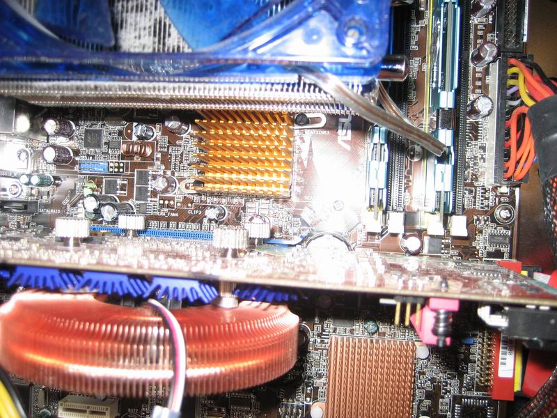 Das einzige Problem an dem Gehäuse ist der um 180 Grad gedrehte Mainboardeinbau, welcher ja jedes MoBo mit Heatpipe ausschließt, da diese ja nicht ordentlich funktioniert. Eigentlich wollte ich mir ein Abit AB9 Quad GT oder ein Asus Commando holen. Nur beide haben eine Heatpipe.