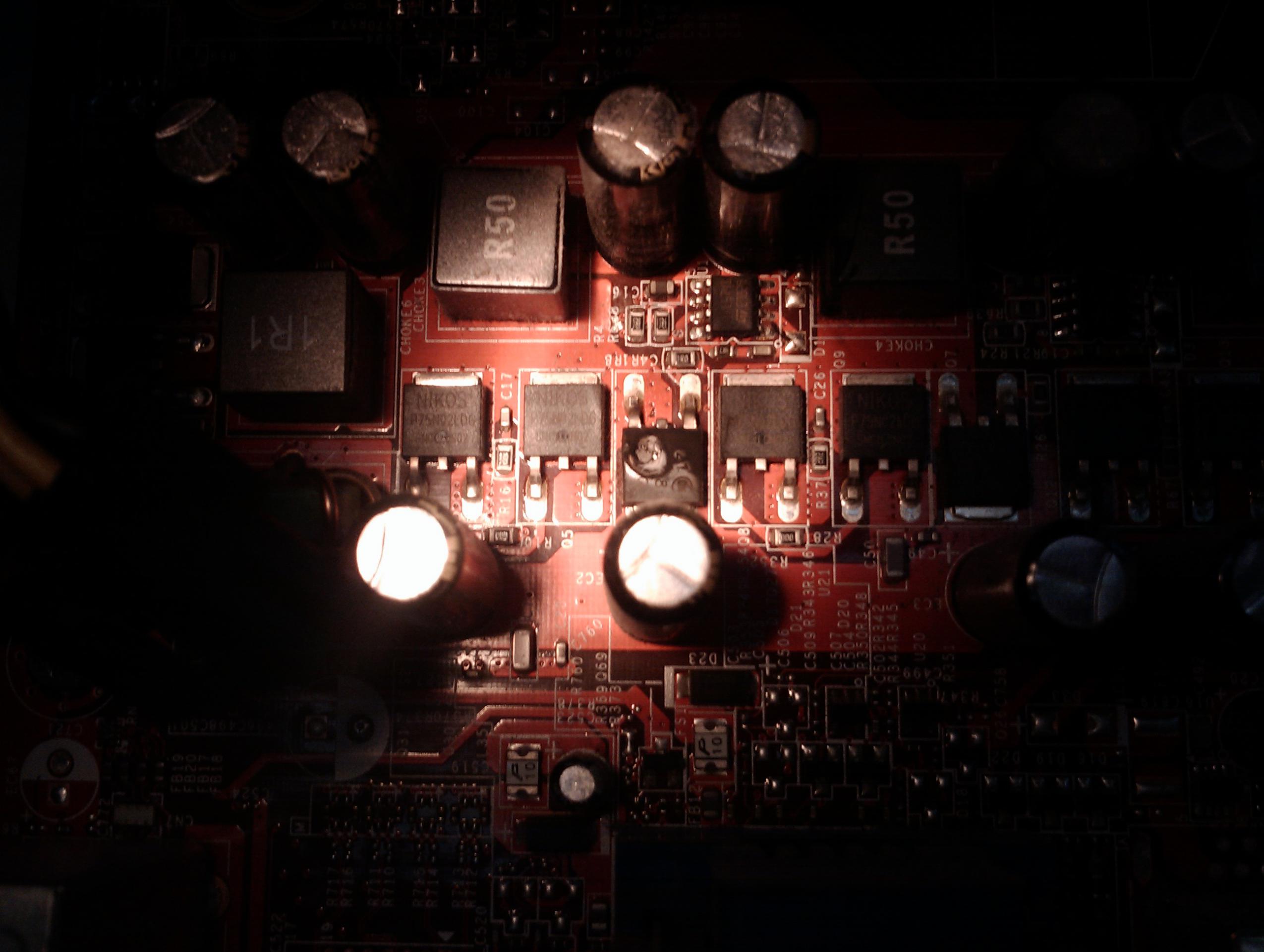 heute hab mein PC gebrannt. Er ging während ich am Arbeiten war einfach aus. Als ich ihn wieder an gemacht hab kam ein Funke und eine Flamme aus einem Teil neben der CPU und das sieht nicht gesund aus. Lustig ist nur, dass das Board im Moment einwandfrei funktioniert.