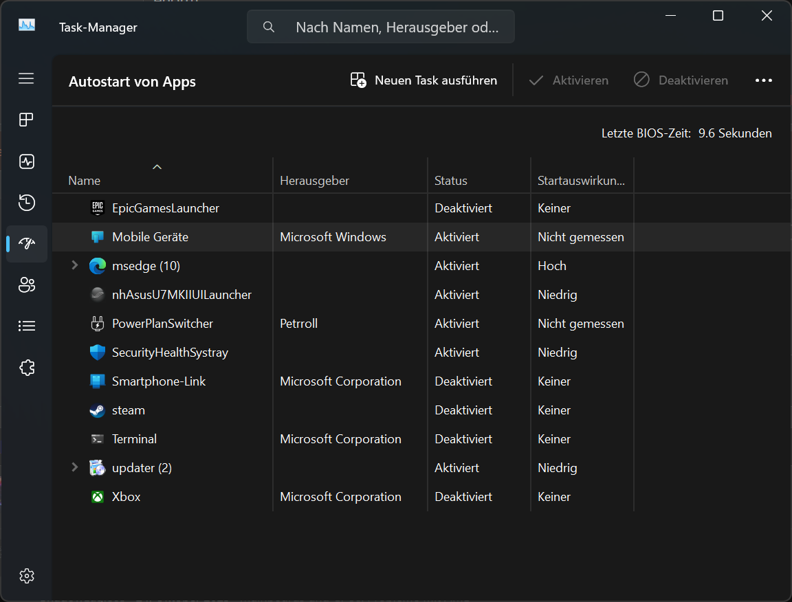 Ich hatte vorher ein MSI Z590 Carbon das eine Bios Start Zeit von unter 10 Sekunuden hatte und Windows 11 mit gesamt 20 Sekunden geladen war. Jetzt habe ich ein Z890 Carbon und die Bios Start Zeit liegt bei ca. 40 Sekunden, mit Windows benötige ich knapp 1 Minute bis alles fertig ist. Ich habe ähnliche/gleiche Einstellungen im Bios vorgenommen wie bei dem Z590. Ist das jetzt bei neuen Boards normal das die länger brauchen oder kann man noch was einstellten Fastboot, Memtest usw.