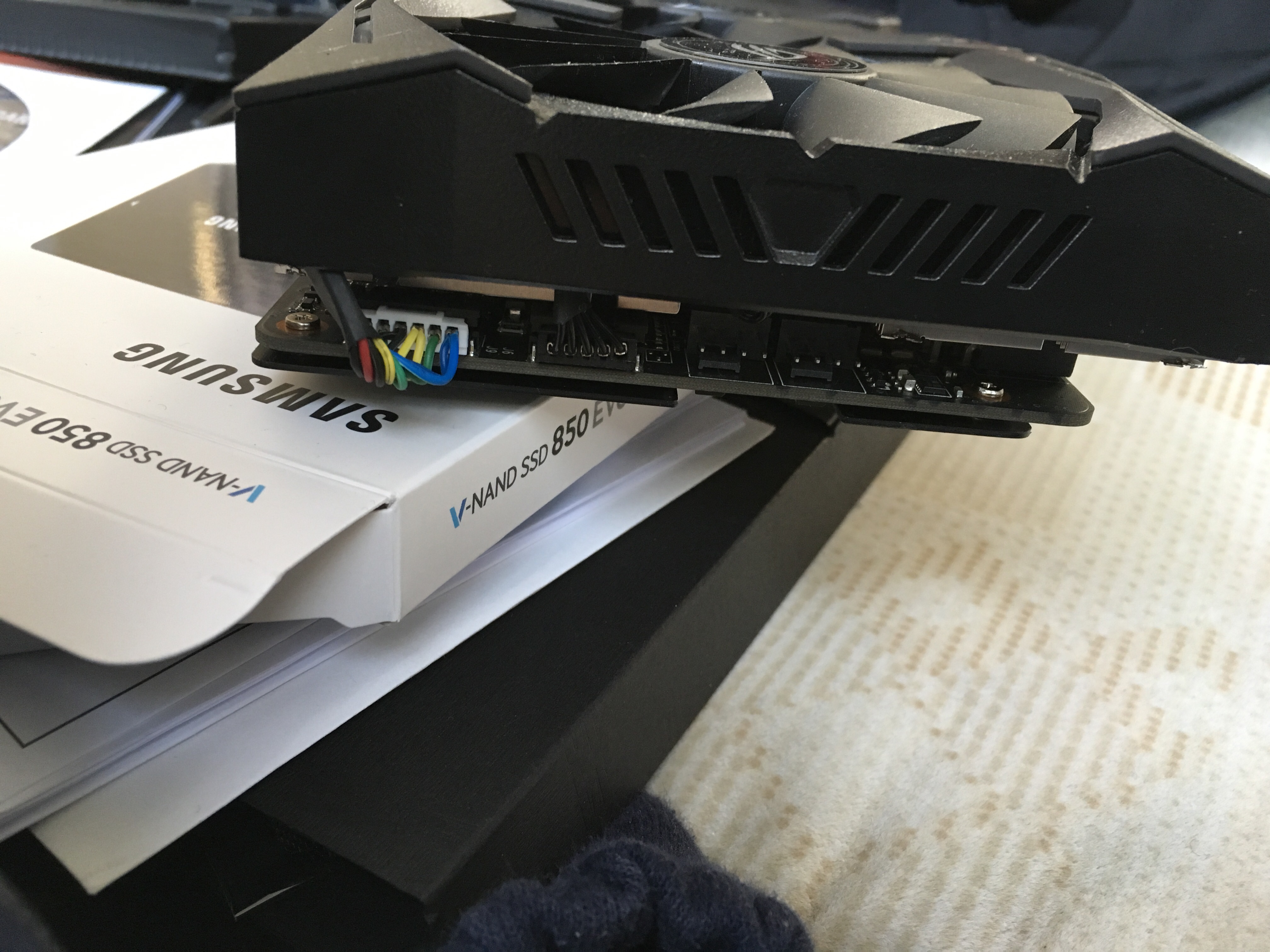 So zum Problem: hab alles eingebaut samt GPU, Stromkabel ans Netzteil, Netzteil angeschaltet, Mainboard fängt an den PCIe slots Orange zu leuchten(sah soweit normal aus), dann Power Knopf gedrückt. Lüfter fingen kurz an sich zu drehen dann ein Blitz...an der GPU an einem Stecker der zu sehen ist, von Werk aus drinnen paar Bunte Kabel.