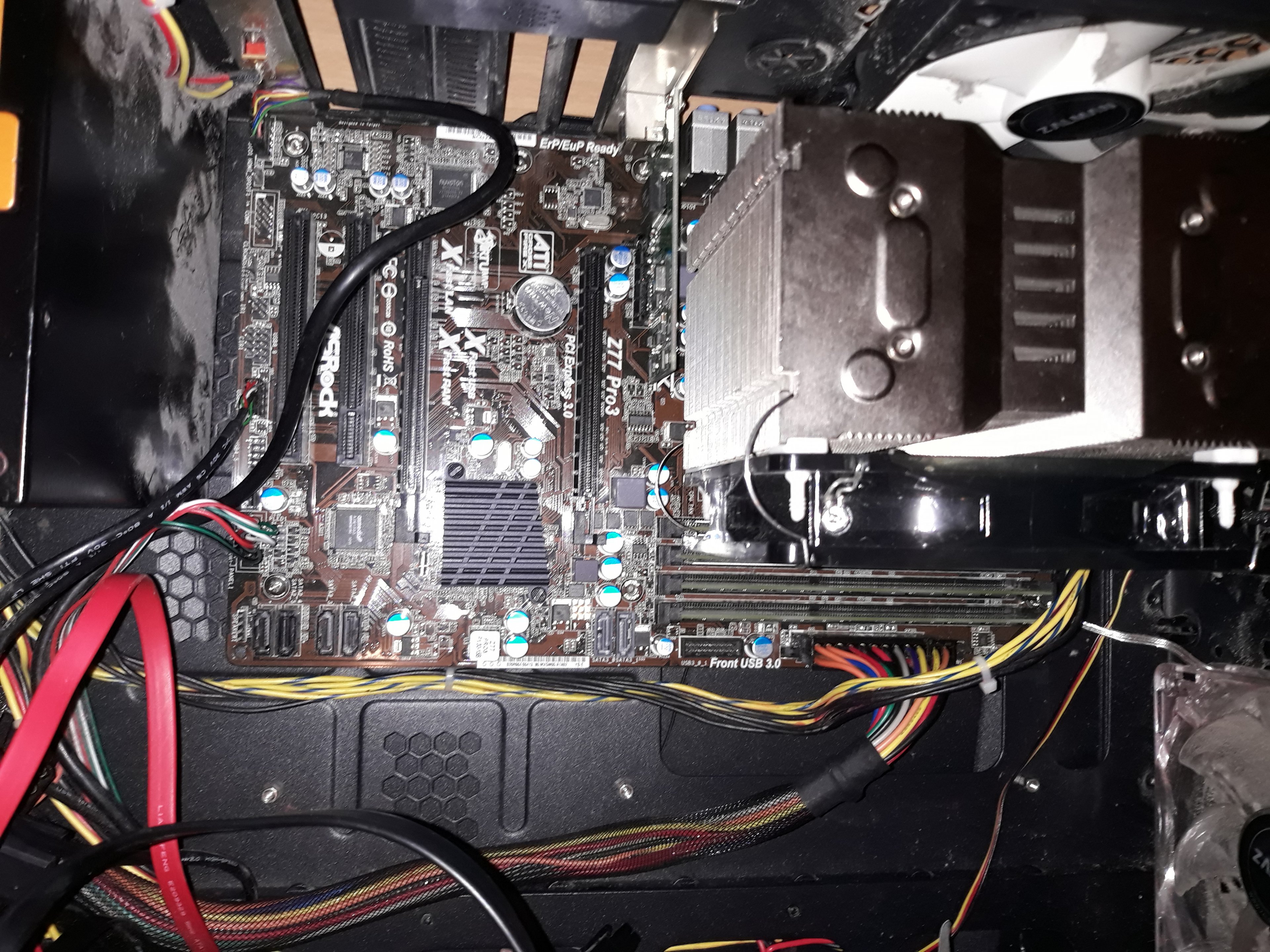 Für einen DualChannel ist z.b. schon der RAm falsch gesteckt. Sind Abstandshalter unterm Mainboard verbaut? Was für ne Erweiterungskarte ist da noch im obersten PCIe Slot verbaut?