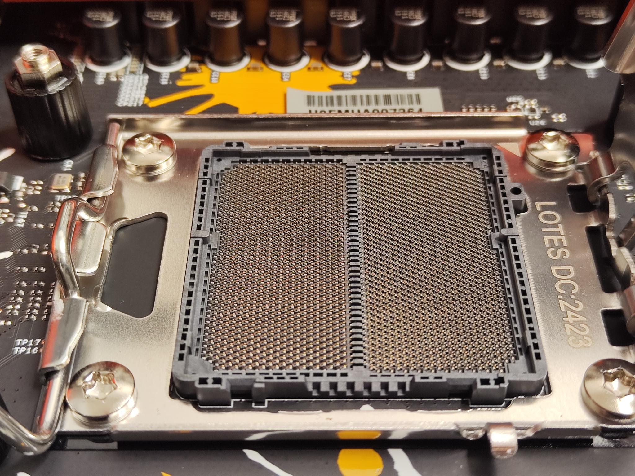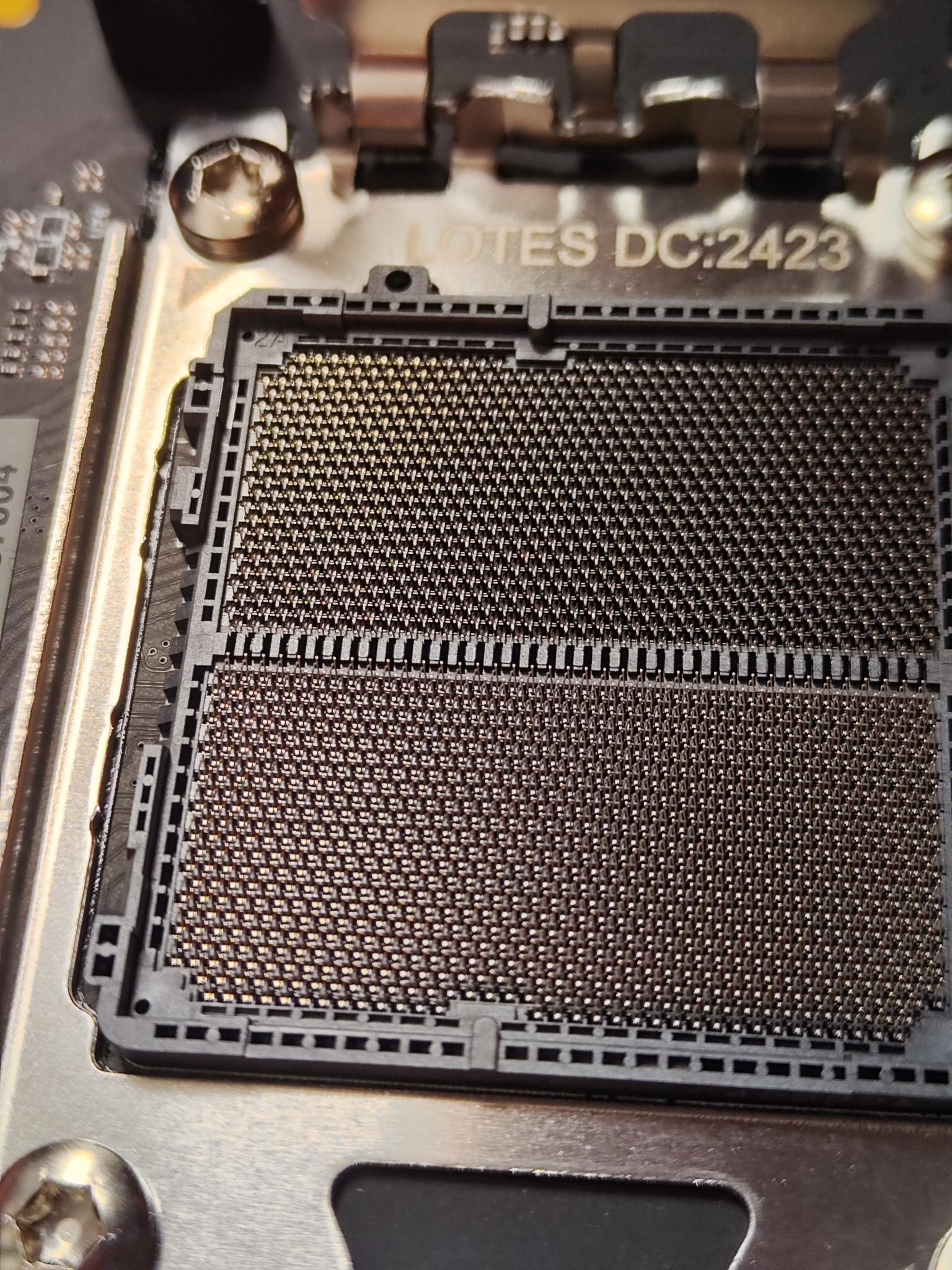 Meine Vermutung ist, dass die PINs verbogen sind, weil das, wie ich schon einige Male gelesen habe, die häufigste Ursache ist. Daher habe ich den CPU Lüfter noch mal abgebaut und die CPU entfernt. Da das meine erstes Mainboard mit PINs ist (jaja, ich weiß, ich bin alt, früher hatten halt die CPUs die PINs), bin ich mir nicht sicher. Zumindest für mein Auge sehen die PINs auf der oberen Seite sehen verbogen aus, oder irre ich mich?