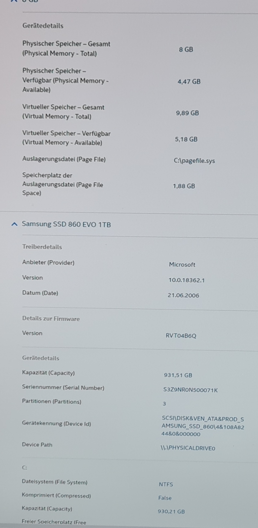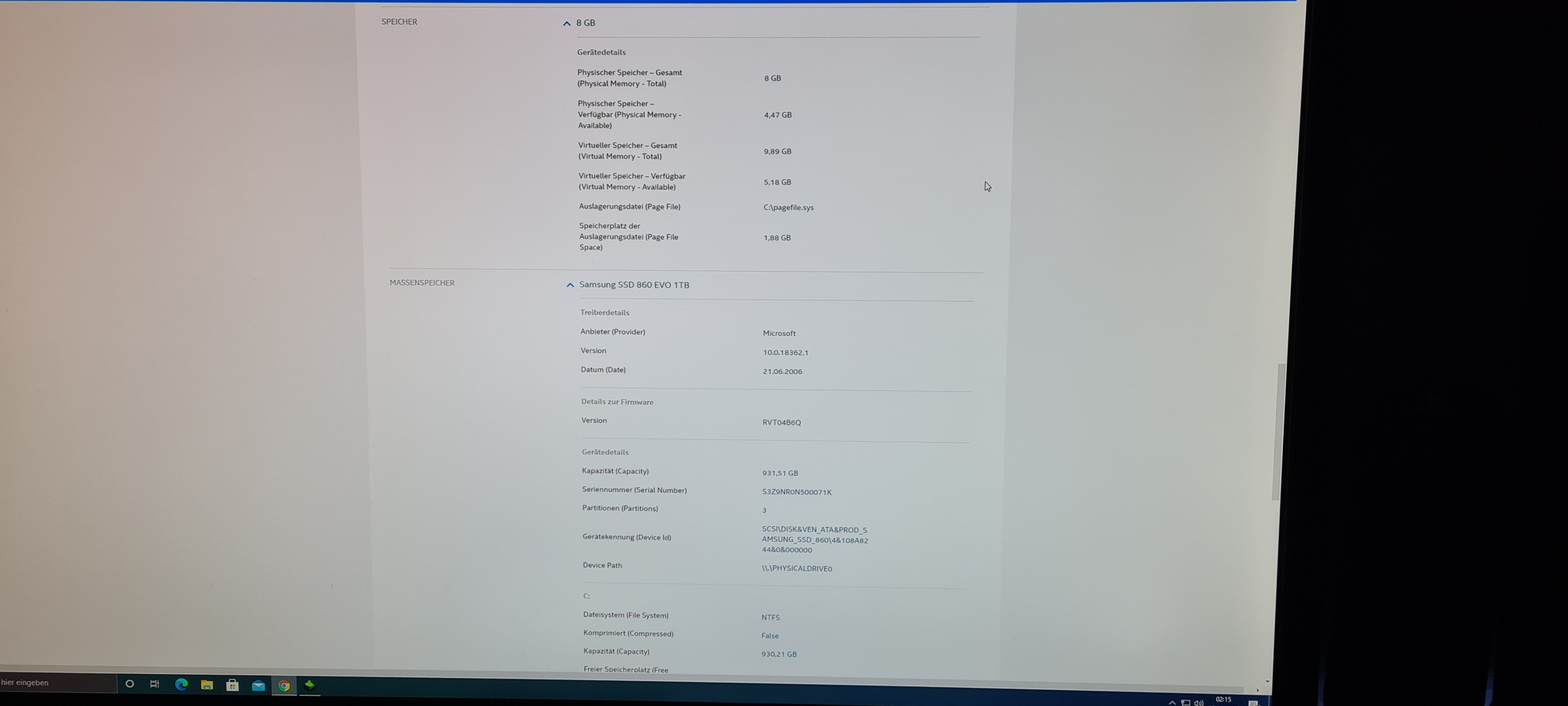 Ich habe mehrere Bilder angehängt wo alle meine Computer Spezifikationen noch genauer aufgelistet sind.