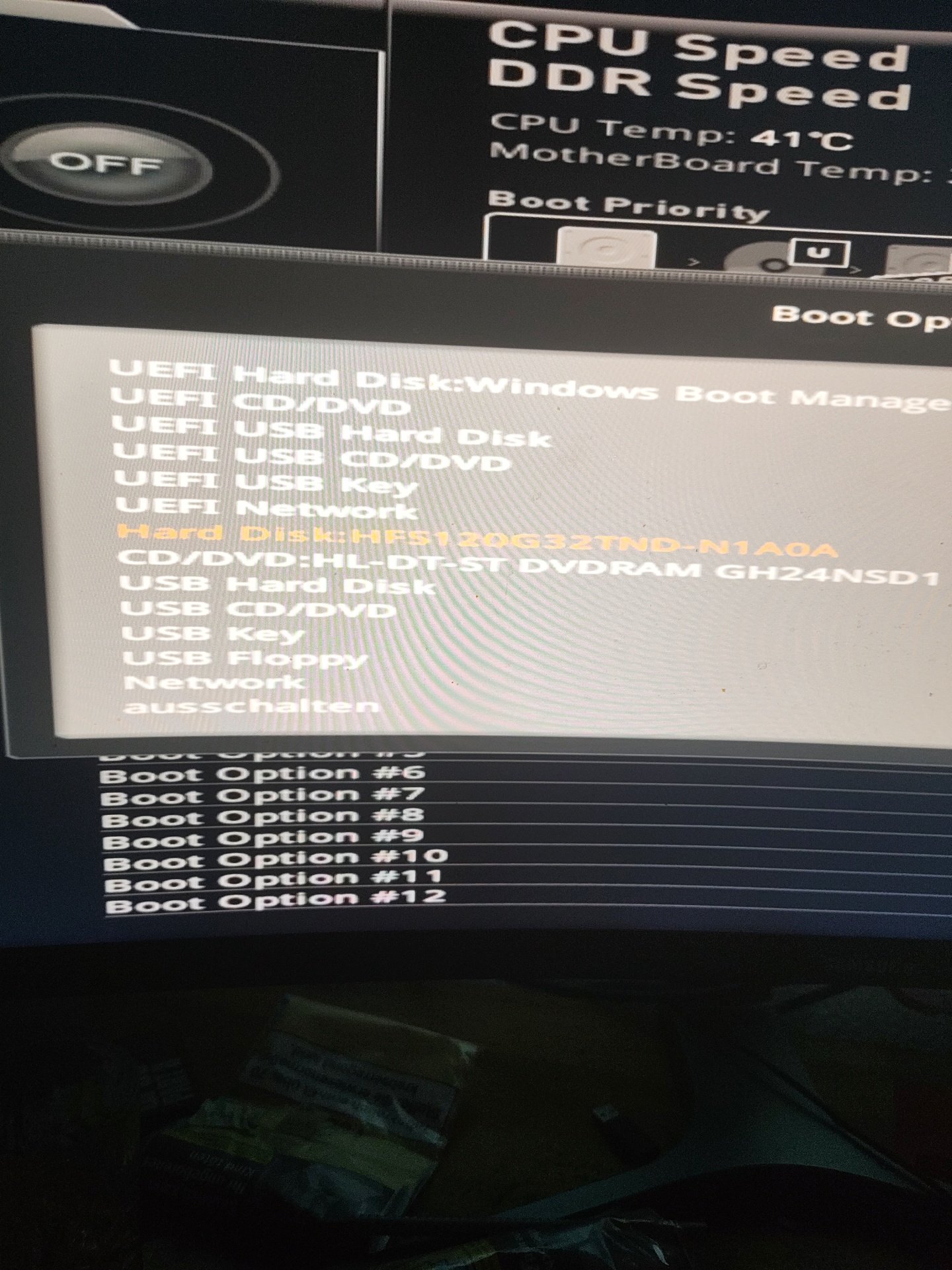 Mir war es erstmal wichtig das ich ins Betriebssystem reinkomme. So was ich jetzt habe mir wird nur eine Festplatte angezeigt