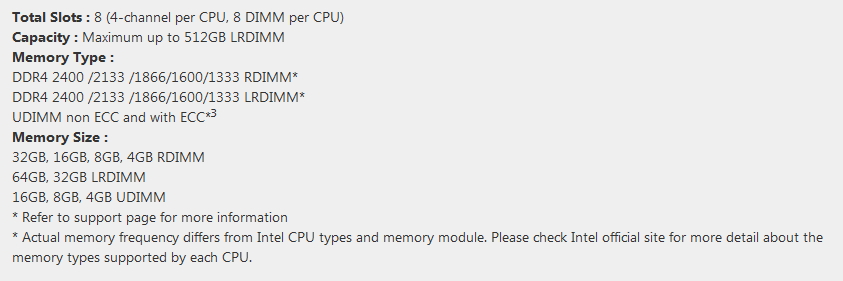 DDR4-1333 regECC, DDR4-1600 regECC, DDR4-1866 regECC, DDR4-2133 regECC