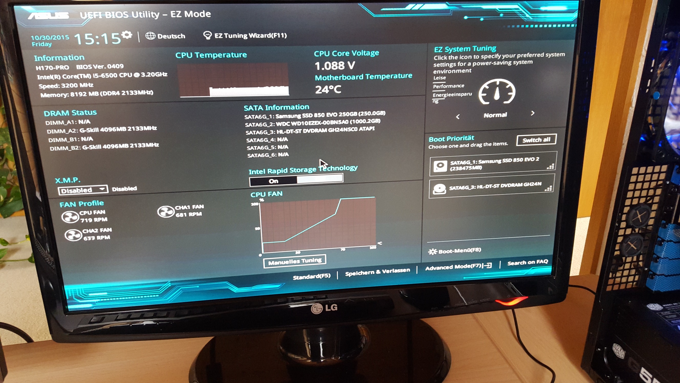 Die Lüfter habe ich wieder auf STANDARD gestellt. Jetzt laufen sie ein wenig schneller als vorher nach der Optimierung.