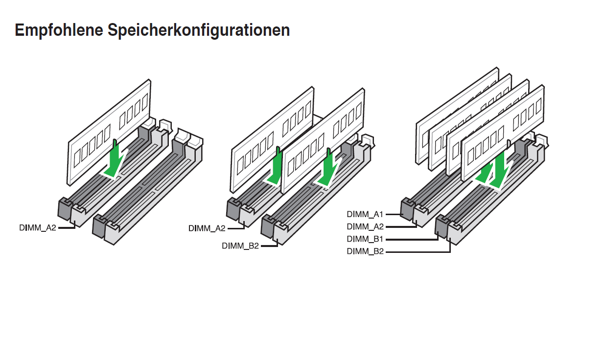 Die Beiden RAM-Rigel bitte noch auf DIMM A1 und B1 umstecken.