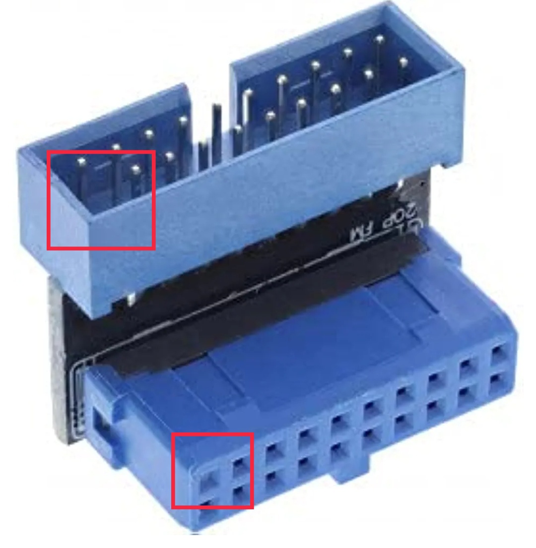 Wenn ich das richtig verstehe, steckt ein Pin vom USB_3-Motherboard-Anschluss im Stecker, der vom Gehäuse I/O-Panel kommt - richtig?