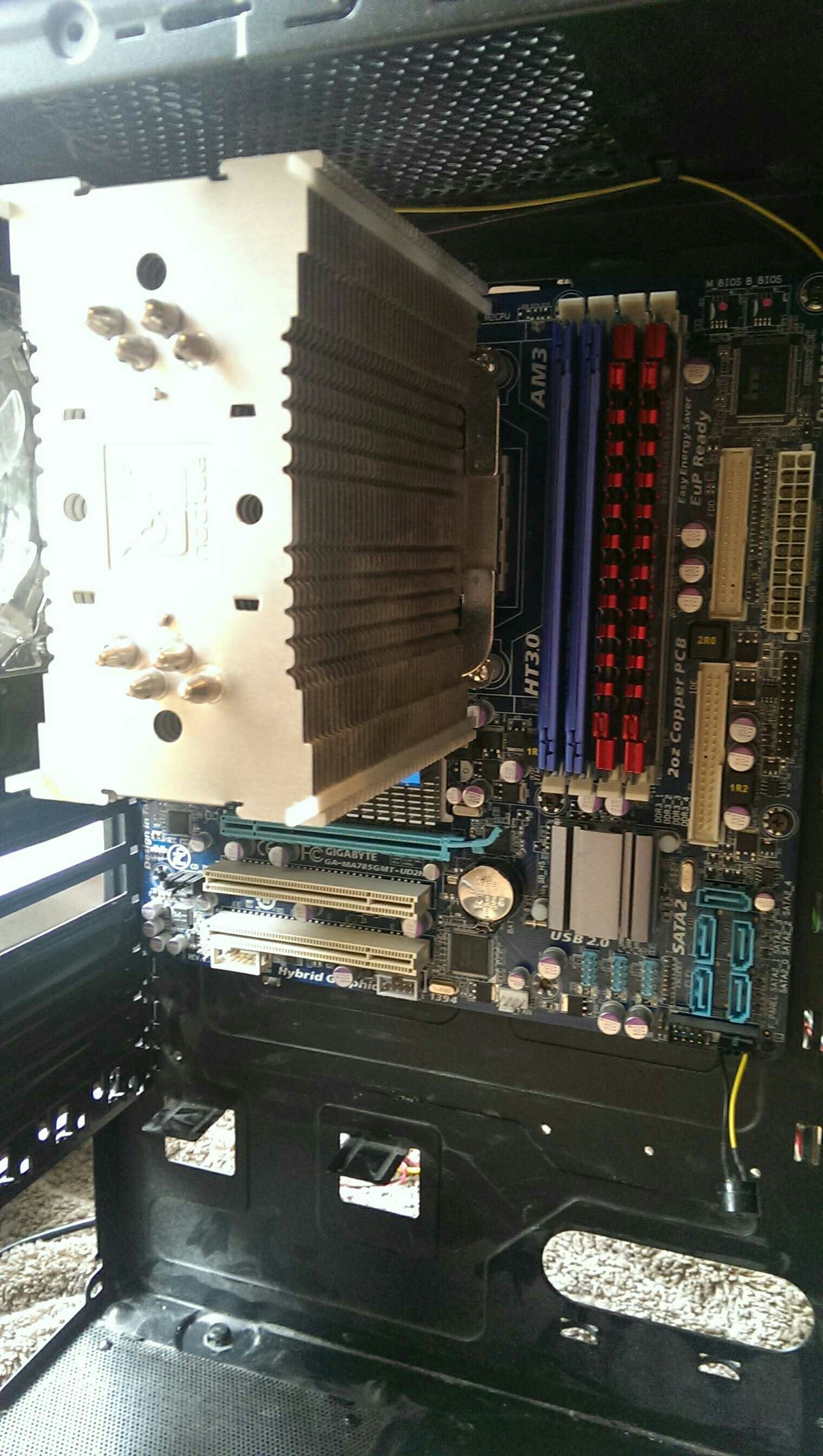 Das Board wurde beim einstecken nicht bis zum Boden gedrückt. Ich gehe davon aus,dass der vorhandene Abstandshalter dies verhindert hat. Des weiteren kam dann auch gleich der nächste "Schock", die Befestigungsschrauben der Grafikkarte wollten auch nicht mehr halten.Ich konnte zumindest eine Schraube aber mit einer Mutter kontern. Nun konnte die Grafikkarte sich zumindest nicht mehr bewegen.
