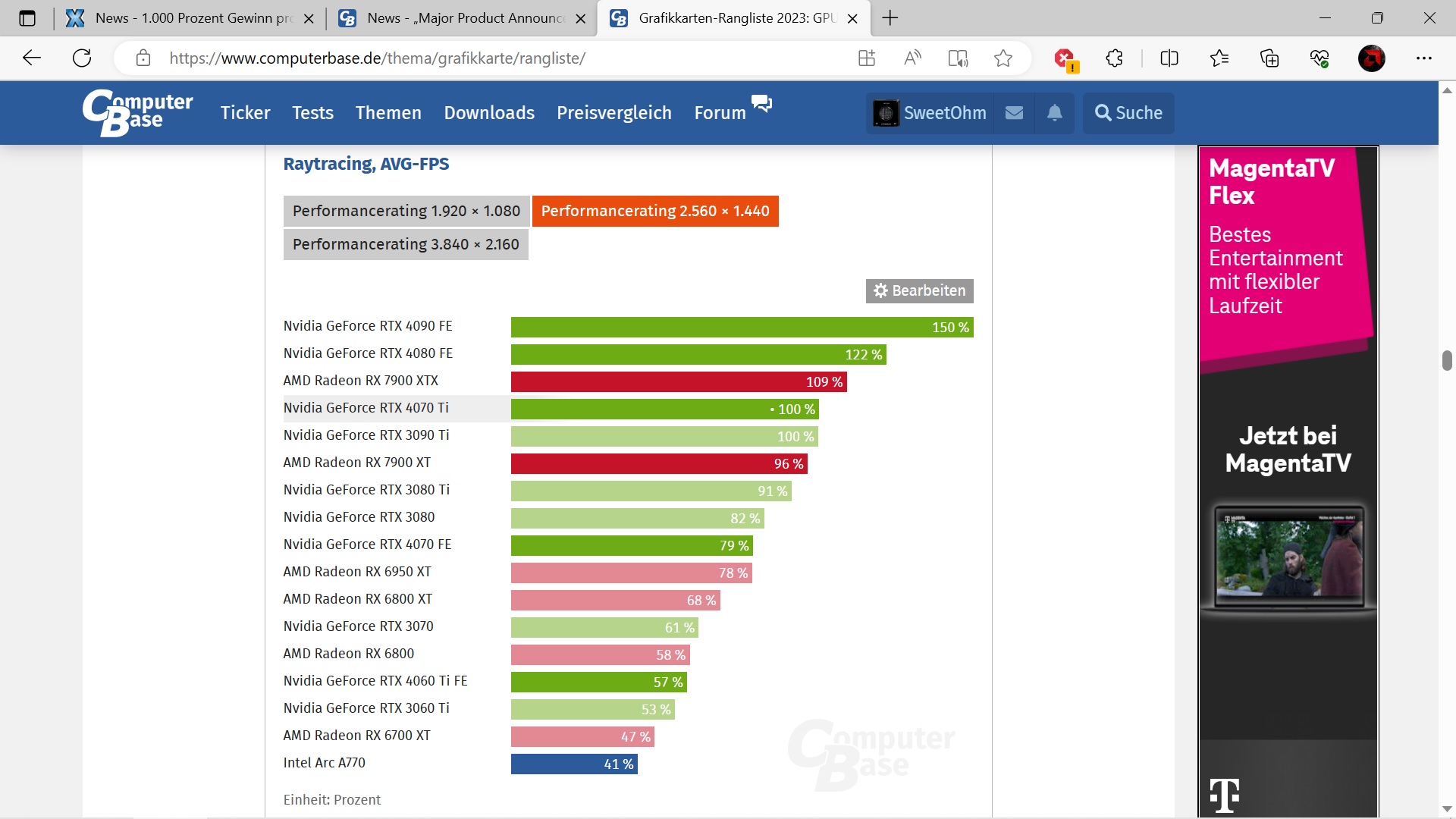 Eine 4070 wären ca. 50% mehr Leistung für 600€.