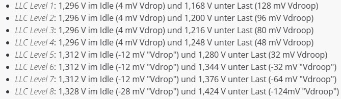 Ich bleibe dabei, Alles auf Auto, keine Powerlimits und Last VCore per LLC maximal absenken=