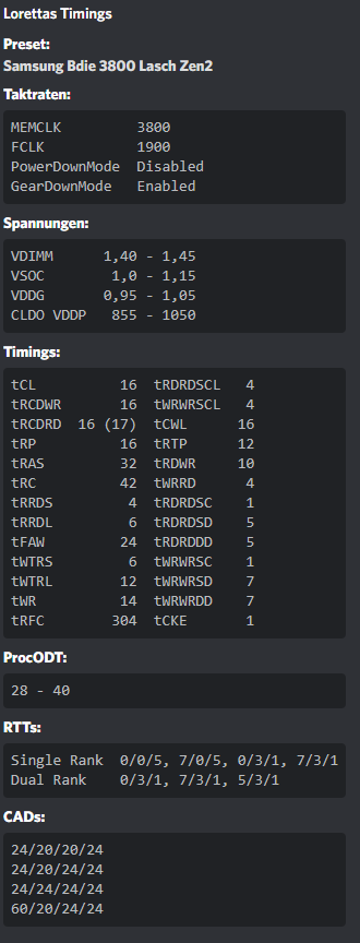 der RAM ist erste Sahne. Da gibt es gute erprobte Presets, mit denen du 95% an Potential rausholst. Dazu müssen ALLE Timings manuell im BIOS gesetzt werden.