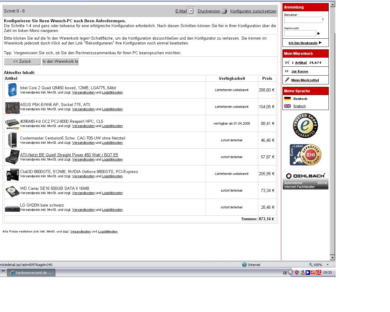 Mit einer 8800GTS würde ich auf einen Preis von ~854 Euro kommen. Mit Boxed CPU