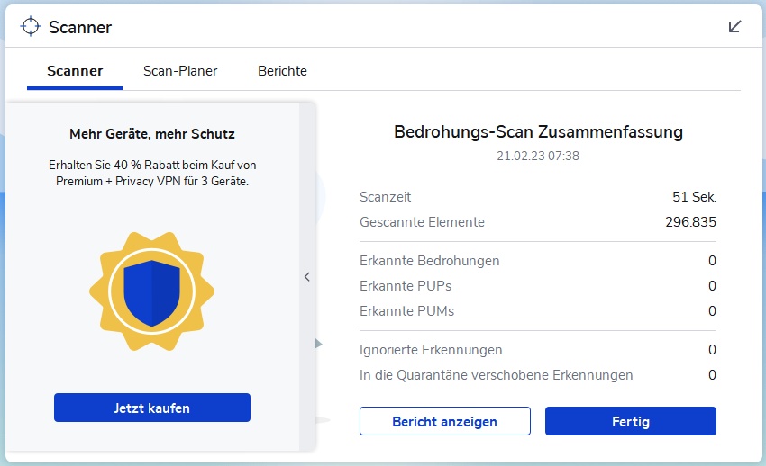 ICh habe mal Malewarebytes runtergeladen um zu schauen. Ich habe ein Advancescan gemacht und auch Rootkitscan aktiviert die Reiter Rootkit, Arbeitsspeicher,startelemete und Registry sind alle Grün abgehakt..der Dateiscan dauert von Partition c und d meiner MX 500 2 TB SSD (fast voll) dauert sehr lange der ist jetzt schon bei fast 2 Stunden...