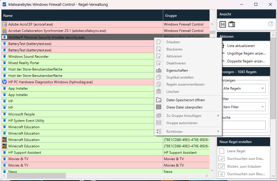Ich nutze Malwarebytes Windows Firewall Control. Bis jetzt auch sehr erfolgreich. Nun habe ich festgestellt das die meisten