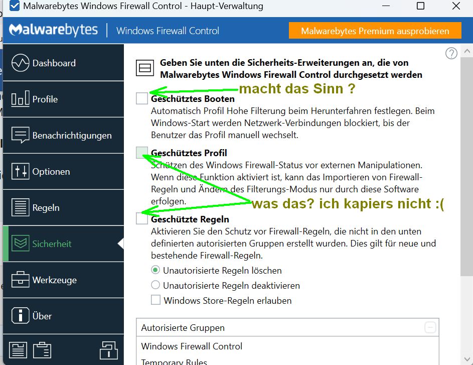 ich würde gerne wissen ob man das ändern kann bei Malwarebytes Windows Firewall Control, nach der Meldung ob Programm ins Internet darf oder nicht gibt es nur 3 Möglichkeiten: erlauben ,blockieren, vorläufig blockieren und mich später fragen.