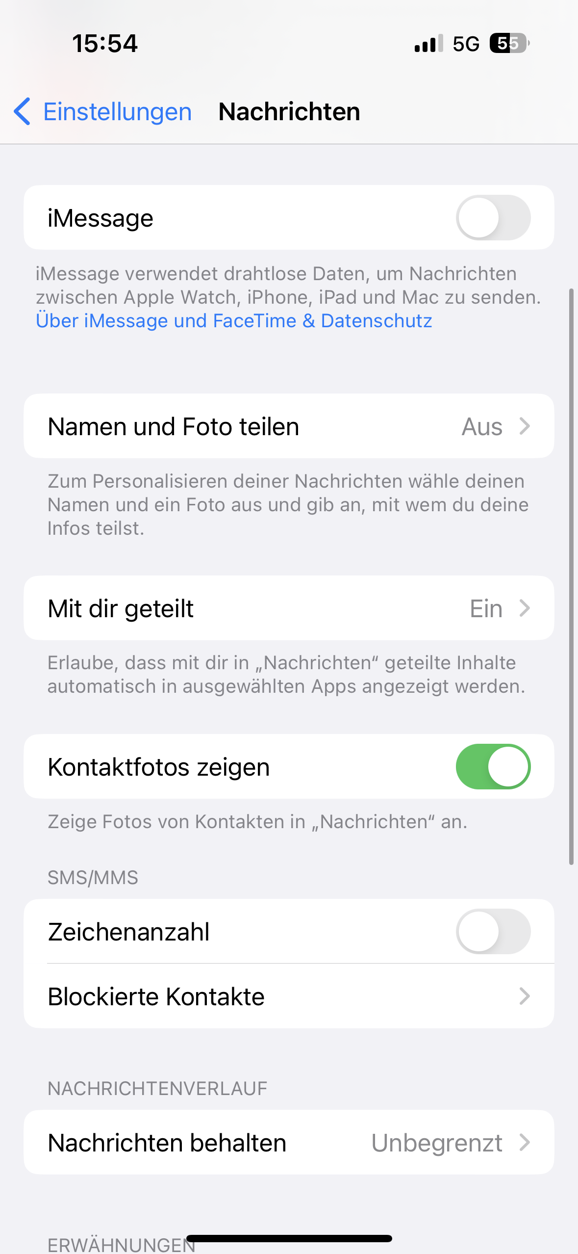 Wir nutzen bei uns ausschließlich iPhones und ich habe vorsichtshalber iMessage ausgeschaltet, da er keine Datenflat hat.