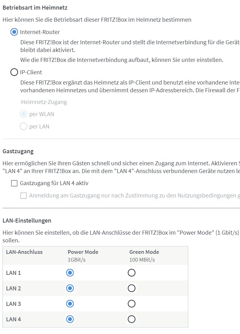 Das Problem besteht erst seit ein paar Tagen; davor lief es immer reibungslos mit 112 MB/s. Alles ist mit Ethernet verbunden, die Anschlüsse sind an der FritzBox alle im PowerMode konfiguriert.