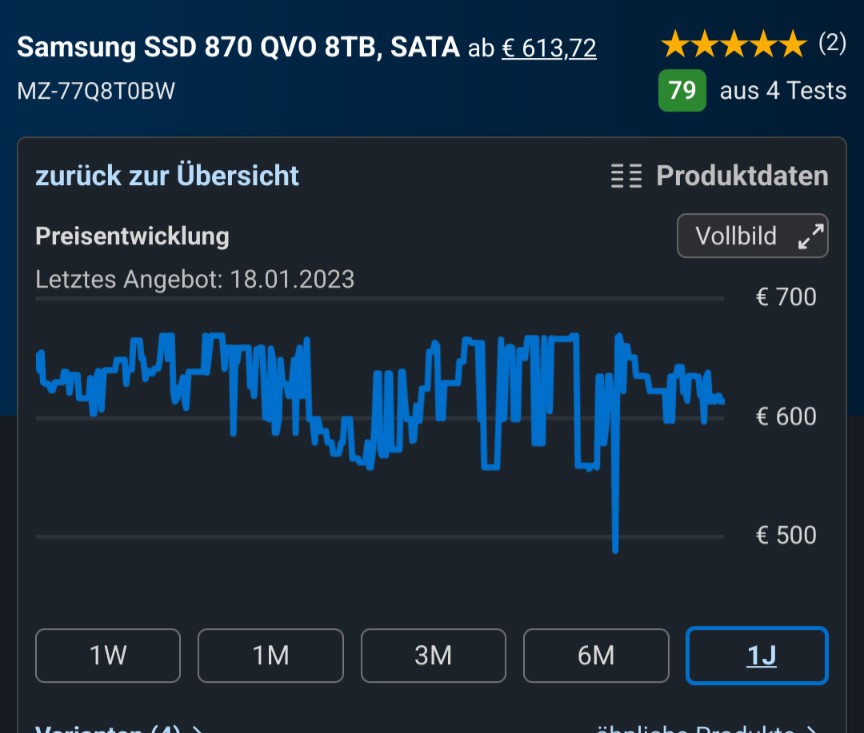 AlphaKaninchen schrieb:@ThePlayer die 8TB QVO gab es laut der Preisentwicklung bei Geizhals im Herbst ganz kurz für unter 500€