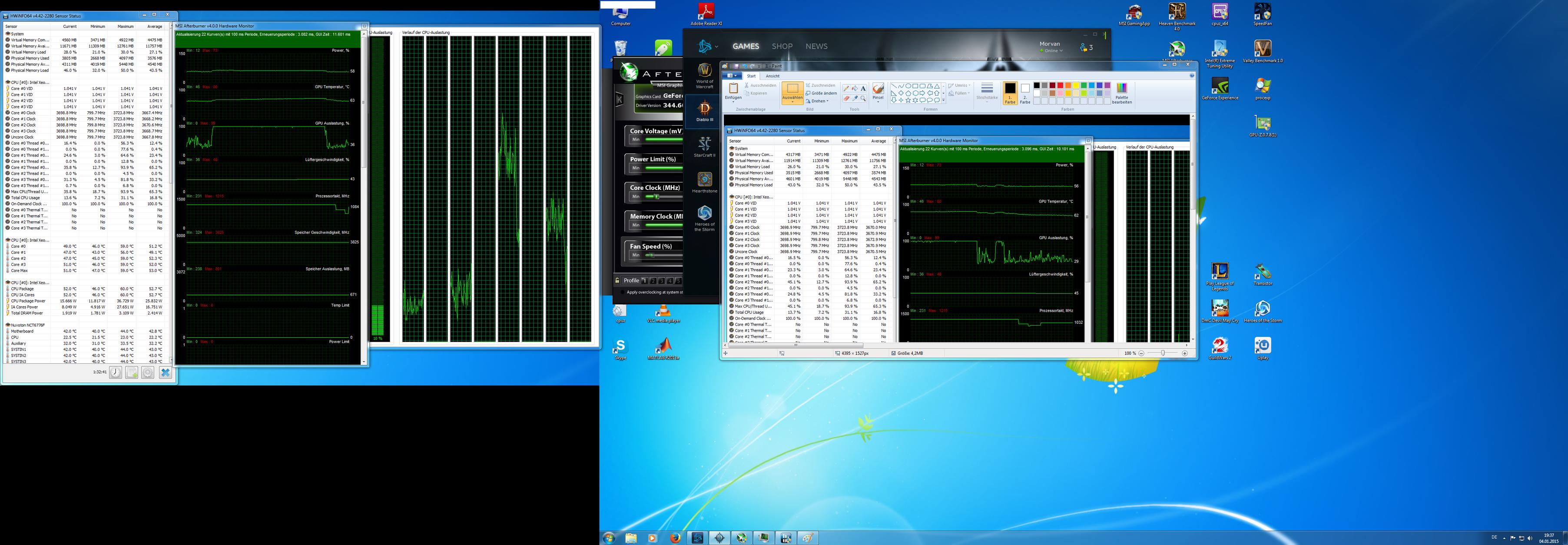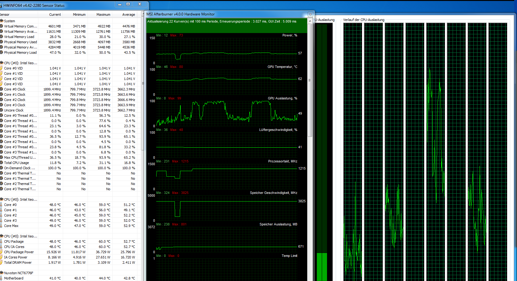Ich habe alle Einstellungen auf maximal aber auch mit niedrigsten getestet. Die Grafikkarte kann ich als Problemursache mehr oder weniger ausschließen, da sie sich während der Framedrops langweilt (siehe Bilder) und sowohl hohe als auch niedrige Auflösung keine Lösung bringt.