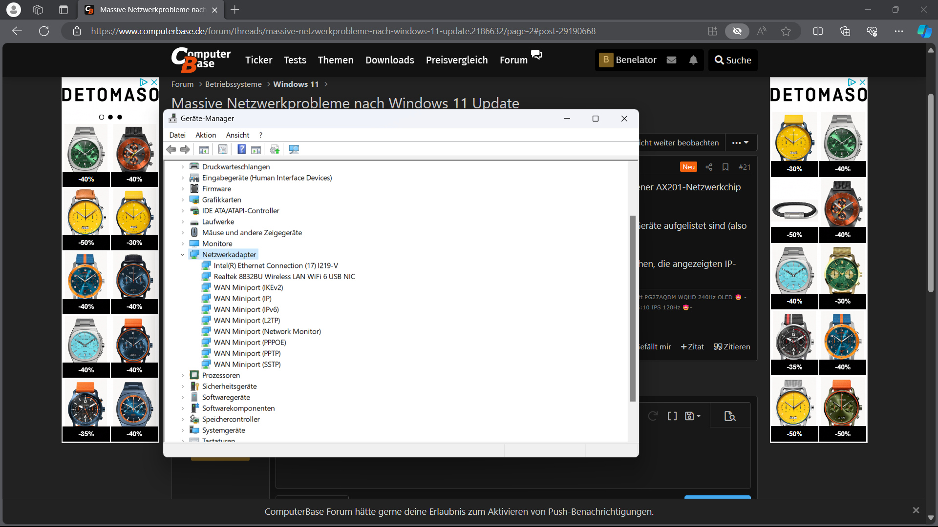 Mach uns mal bitte einen Screenshot vom Geräte-Manager, wo bei Netzwerkadapter die Geräte aufgelistet sind (also bitte einmal auf den Pfeil neben Netzwerkadapter klicken).