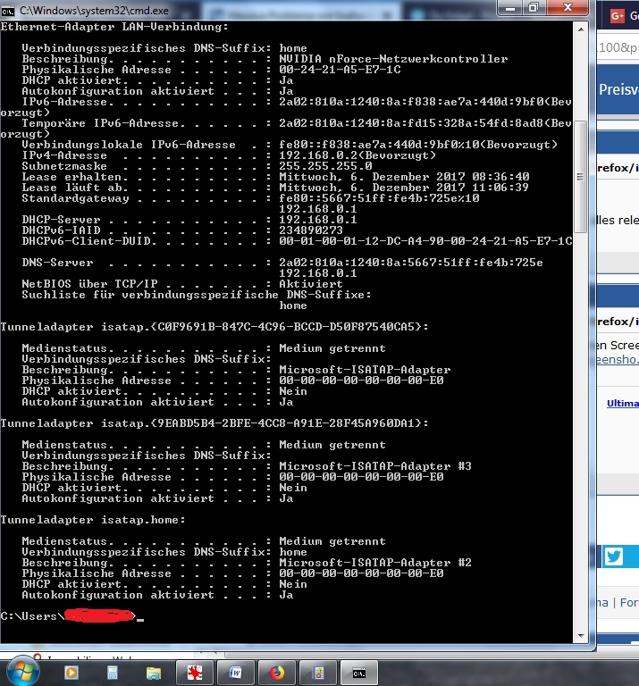 Im Netzwerk-und Freigabecenter wird mir angezeigt daß eine Verbindung steht, mehr nicht.