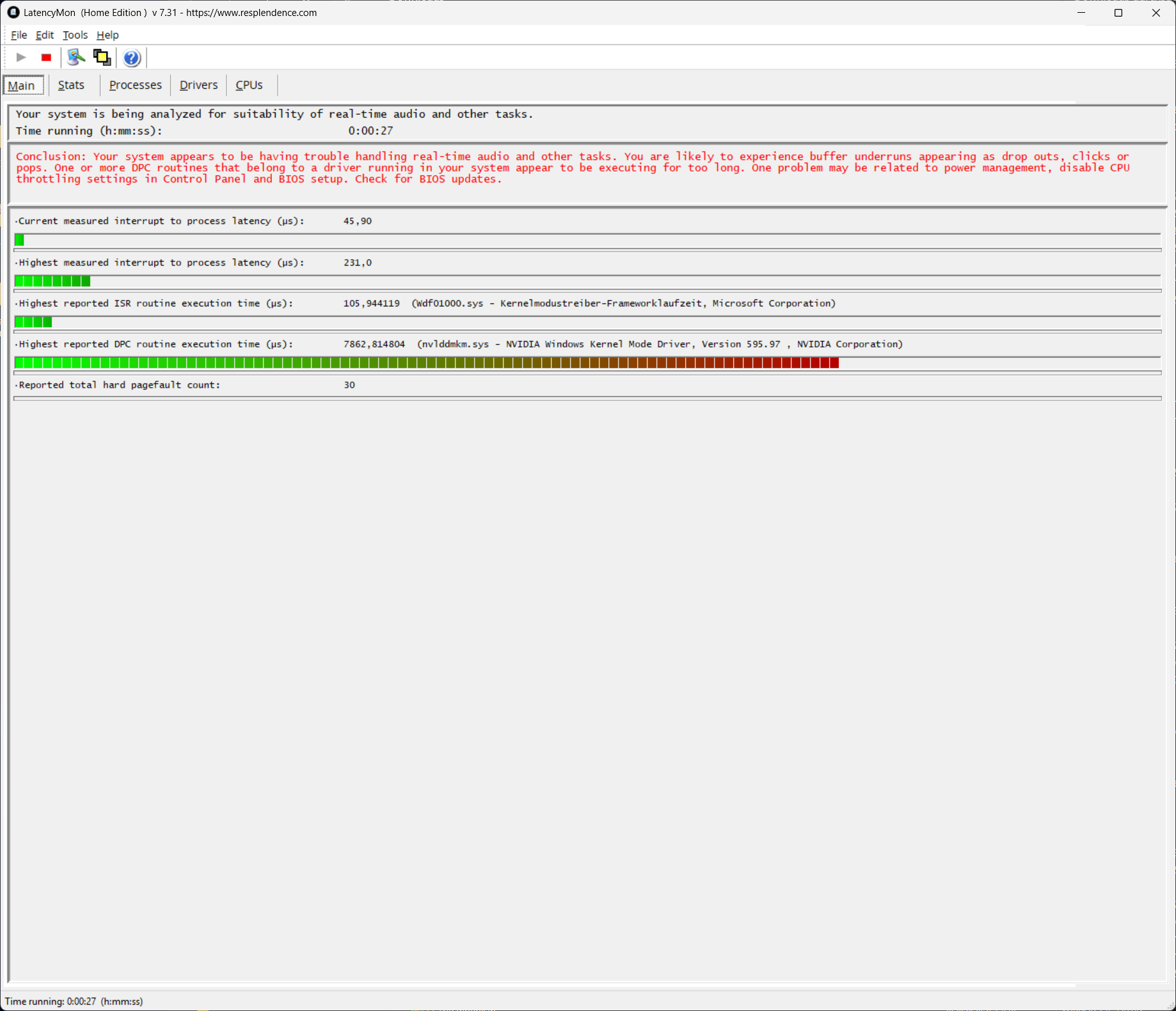 Sogar Latency Monitor installiert der Probleme mit dem NVIDIA Driver anzeigt.