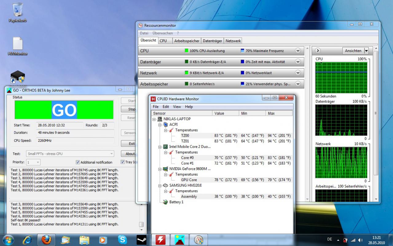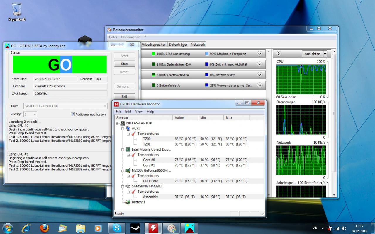 Nun ist mein Laptop undglaublich leise ( ja, Lüfter dreht) aber sobald er unter vollast Gerät wird er unglaublich heiss ( siehe Screens ) aber auch kein Stück lauter. Stattdessen taktet er sich wieder runter. Man merkt schon wie der Lüfter ein bisschen schneller dreht, aber er kann definitiv mehr !