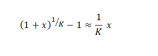 (1+x)^(1⁄K)-1≈1/K x