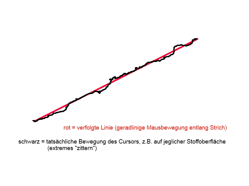 Hi, wie oben erwähnt habe ich das Problem, dass mein Mauszeiger - egal bei welcher dpi-Empfindlichkeitsstufe oder sonstigen Einstellwerten - auf sehr vielen Oberflächen zittert. Habe ein selbsterklärendes Beispielbild mit hochgeladen, welches die Problemstellung ganz gut darstellen sollte.