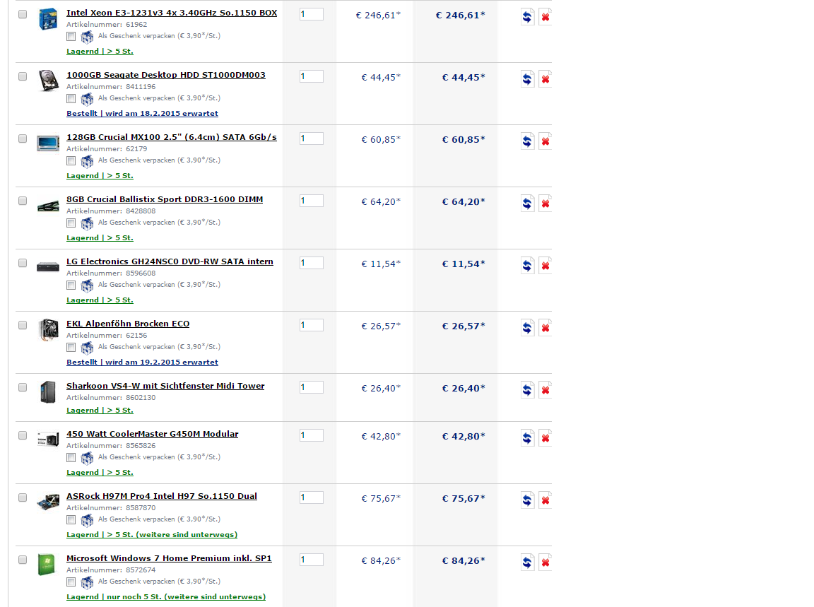 Am besten alles von einem Händler. Meine Liste sieht bis jetzt so aus:
