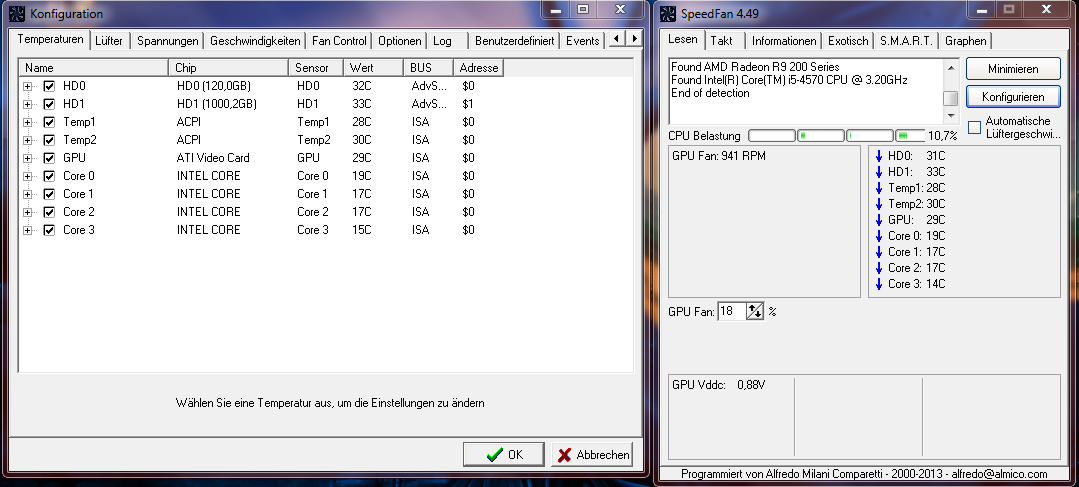 Speedfan ist bei Temperaturen eher ungenau. Nimm den HwMonitor, der macht das besser.