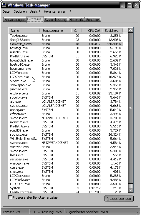 Soweit ging alles gut, doch beim Spielen im Internet mit CoD 2 stellte ich fest ,daß meine CPU auf fast 100% läuft.