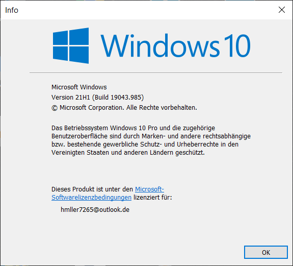 Ich habe es gerade installiert: 21H1 Build 19043.985.