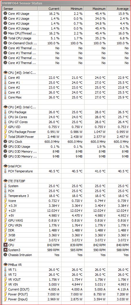 hier die aktuellen temps in meiner "neuen" kiste, die leider, trotz des besonders leisen kühler-fans nicht leiser ist als zuvor. ob ich einfach den einzig noch verbliebenen gehäuse-lüfter abschalten kann? kann man sowas eigentlich von außen, mittels software? könnte es bei diesen werten (und meinem inzwischen fast leeren riesen-cosmos1000-gehäuses mit tollem vent-system) auch GANZ ohne aktive lüfter gehen? das wäre zu irre, soll ich's mal versuchen? kann man sich auf die cpu-daten von hwinfo verlassen? speccy zeigt sie ja gar nicht an ...
