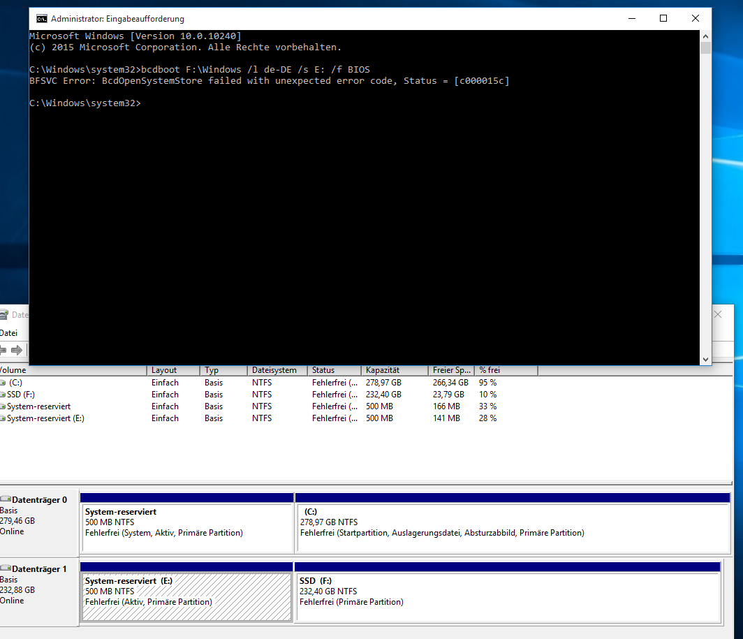 Bin durch die HDD (mit ssd angeschlossen) ins system und habe von USB Stick den Boot Ordner auf die SSD gezogen, Versucht nochmal mit bootrec zu reparieren -> Erfolgslos