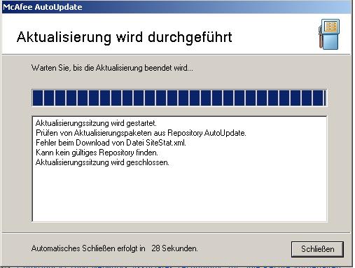 Anfangs wurde das Update durch einen globalen Server zur Verfügung gestellt. Dies ist mittlerweile eingestellt. Die Internetverbindung steht, aber wenn ich über die Option des McAfees gehe und möchte ein Update durchführen kommt folgender Fehler: