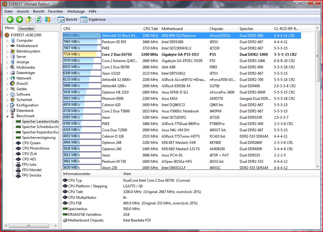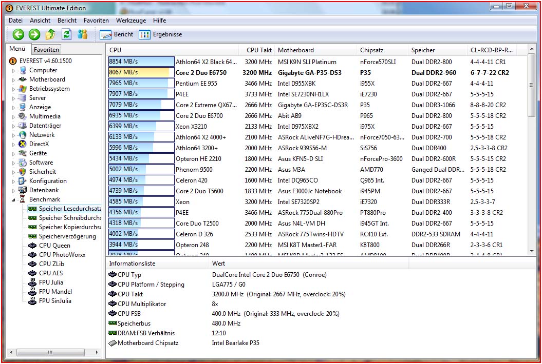 Jetzt kommt der Hammer: bei meinem e6750@3,2Ghz und 400er FSB hat mein Board den MDT auf 960Mhz betrieben. Timings waren verhältnismäßig schlecht: 6-7-7-22.