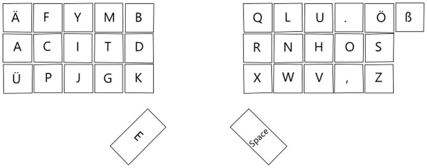 Mit dem Eintauchen in die Tiefen des Tastatur-Designs stoße ich auch in den Bereich der alternativen Layouts vor. Hier ins Detail zu gehen würde den Rahmen dieses Beitrags sprengen. Ich möchte nur erwähnen, dass mit einem eigenen Design ein Layout wie DVORAK oder COLEMAN in die Firmware programmiert werden kann. Oder mehrere Layouts, die auf Knopfdruck gewechselt werden. Ich selbst habe mit dem Gedanken gespielt, das nachfolgende Layout zu bauen. Am Ende habe ich vor der notwendigen Phase des Umlernens zurückgeschreckt bzw. ich befürchtete künftige Schwierigkeiten, etwa wenn am Smartphone ein alternatives Tastenlayer nicht ermöglicht wird. Doch ich bin überzeugt, dass solche effiziente Layouts das Schreiben langer Texte gegenüber QWERTZ enorm erleichtern. Schließlich gibt es seit vielen Jahren umfassende statistische Untersuchungen zu solchen Designs.