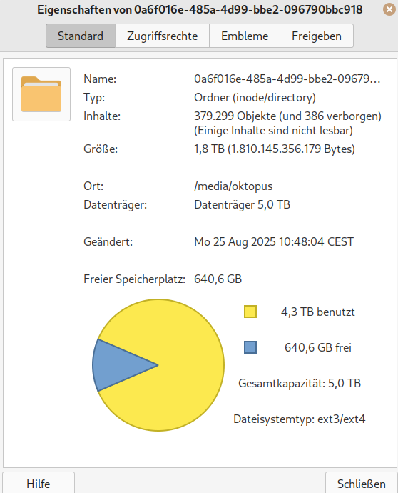 Ich hatte zwei 5 TB große Seagate-One Touch-Festplatten, allerdings war nur eine davon (Platte X) mit LUKS verschlüsselt. Weil ich auch die andere, erst vor einem Monat gekaufte Festplatte (Platte Y) mit LUKS verschlüsseln wollte, habe ich sämtliche Daten (etwa 3 TB) von Platte Y auf Platte X verschoben und die unverschlüsselte Platte Y mit LUKS verschlüsselt. Anschließend wollte ich die zwischengelagerten Daten von Platte X wieder auf Platte Y kopieren. Es gab dabei einige Male Abbrüche beim Kopieren ("Fehler beim Zusammenfügen der Datei: Eingabe-/Ausgabefehler"). Ich dachte, dass dies an den Unmengen an Daten lag (sehr viele kleine Dateien) und es kein Problem darstellt, weil die jeweiligen Dateien sich nach einem erneuten Versuch doch kopieren ließen.