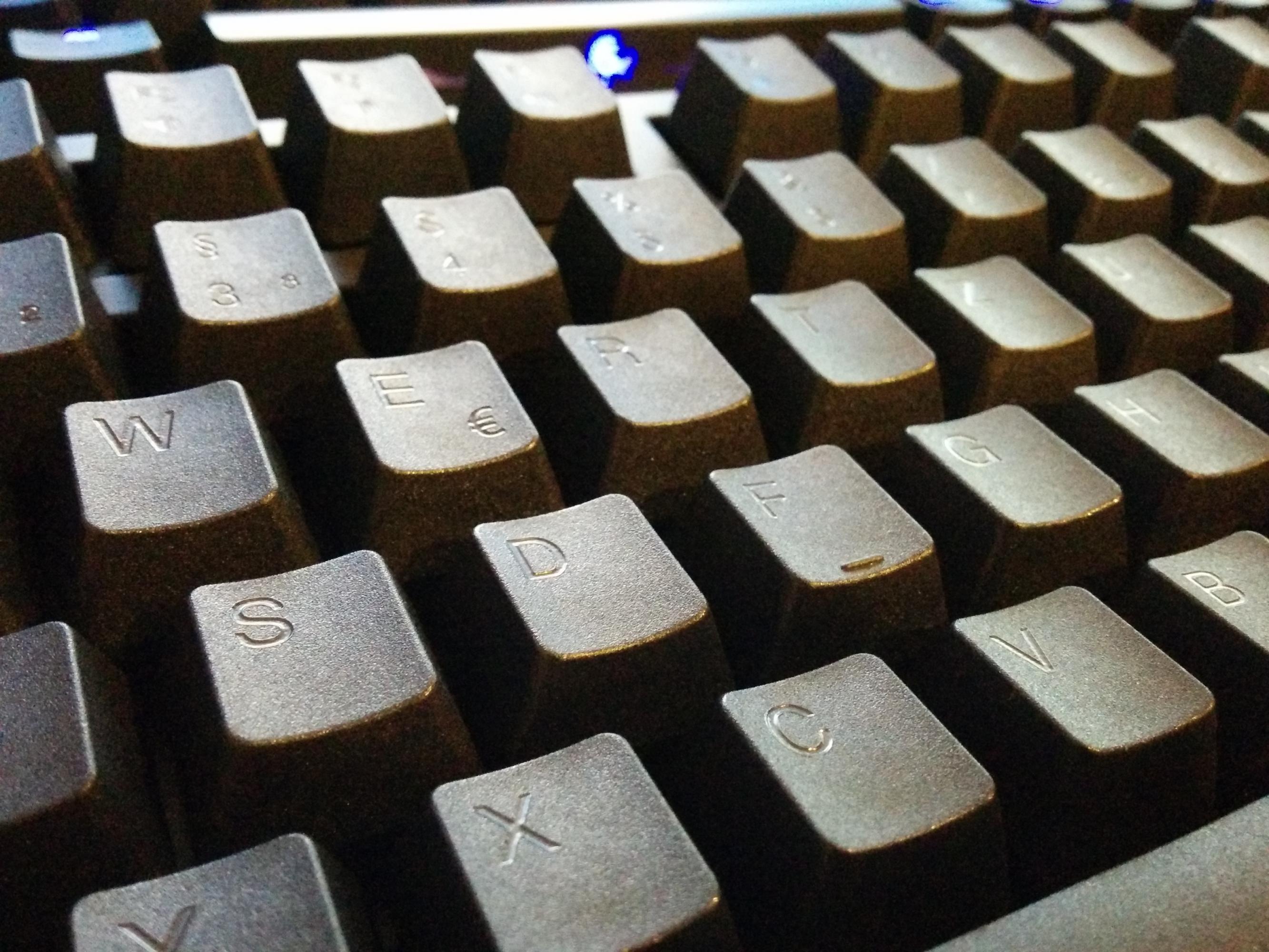 Die PBT Caps mit QWERTZ Layout sind etwas rauer als die ABS Caps meiner Shine 3. Und werden hoffentlich erst in 10 Jahren etwas speckig