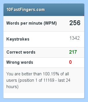 Kannst ja testen indem du einen Wecker auf ne Minute stellst und einfach mal in Word reinhaust. Denke auch dass man da noch einiges rausholen kann.