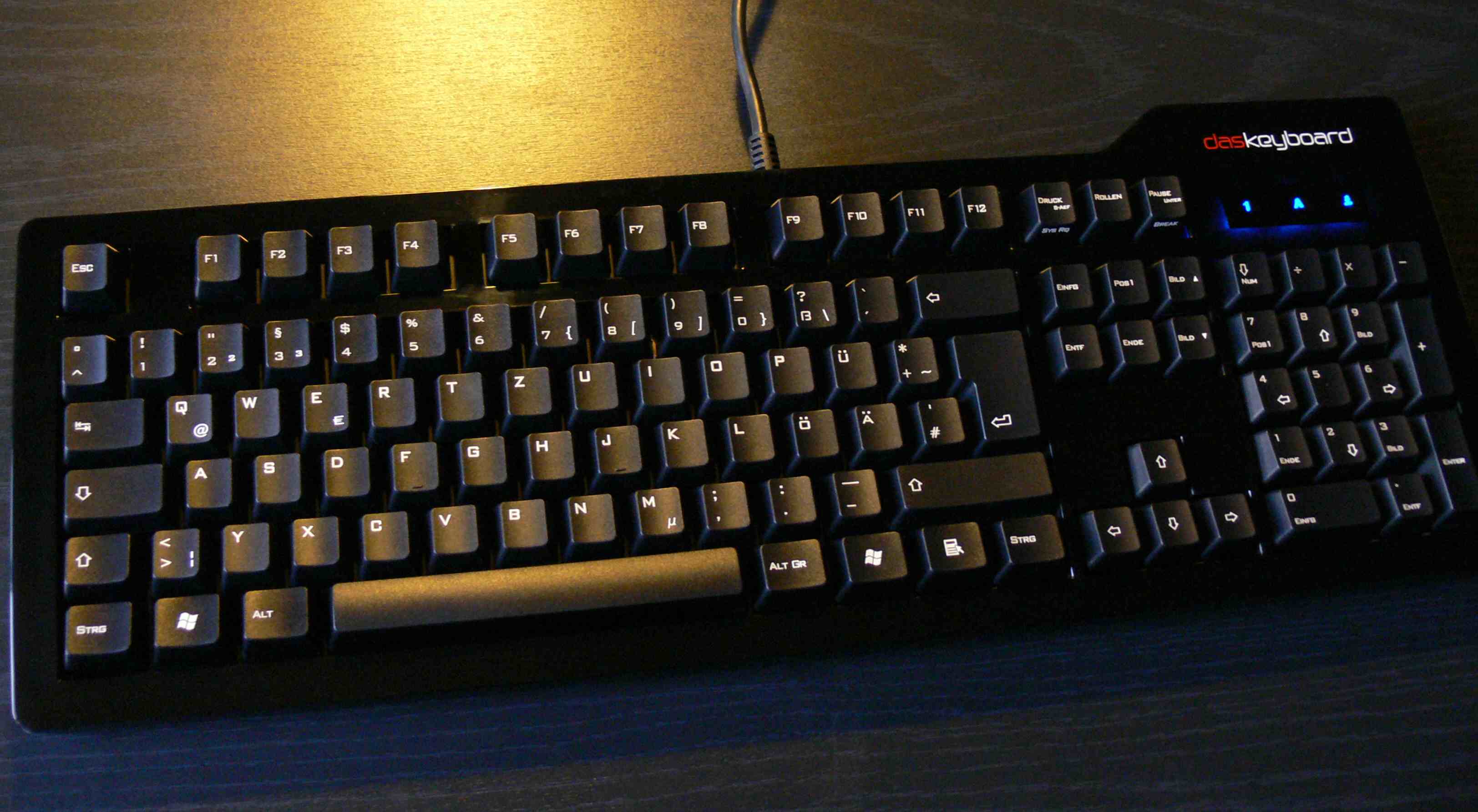 Was soll ich zur DAS noch groß sagen, ist wohl eines der schönsten Boards momentan. Sie liegt total satt auf'm Tisch und hat ein sehr gutes Tippgefühl mit den Blues. Wie das mit dem Klavierlack ausgeht wird man sehen.